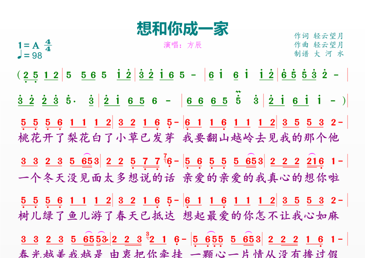 想和你成一家简谱 - 方辰