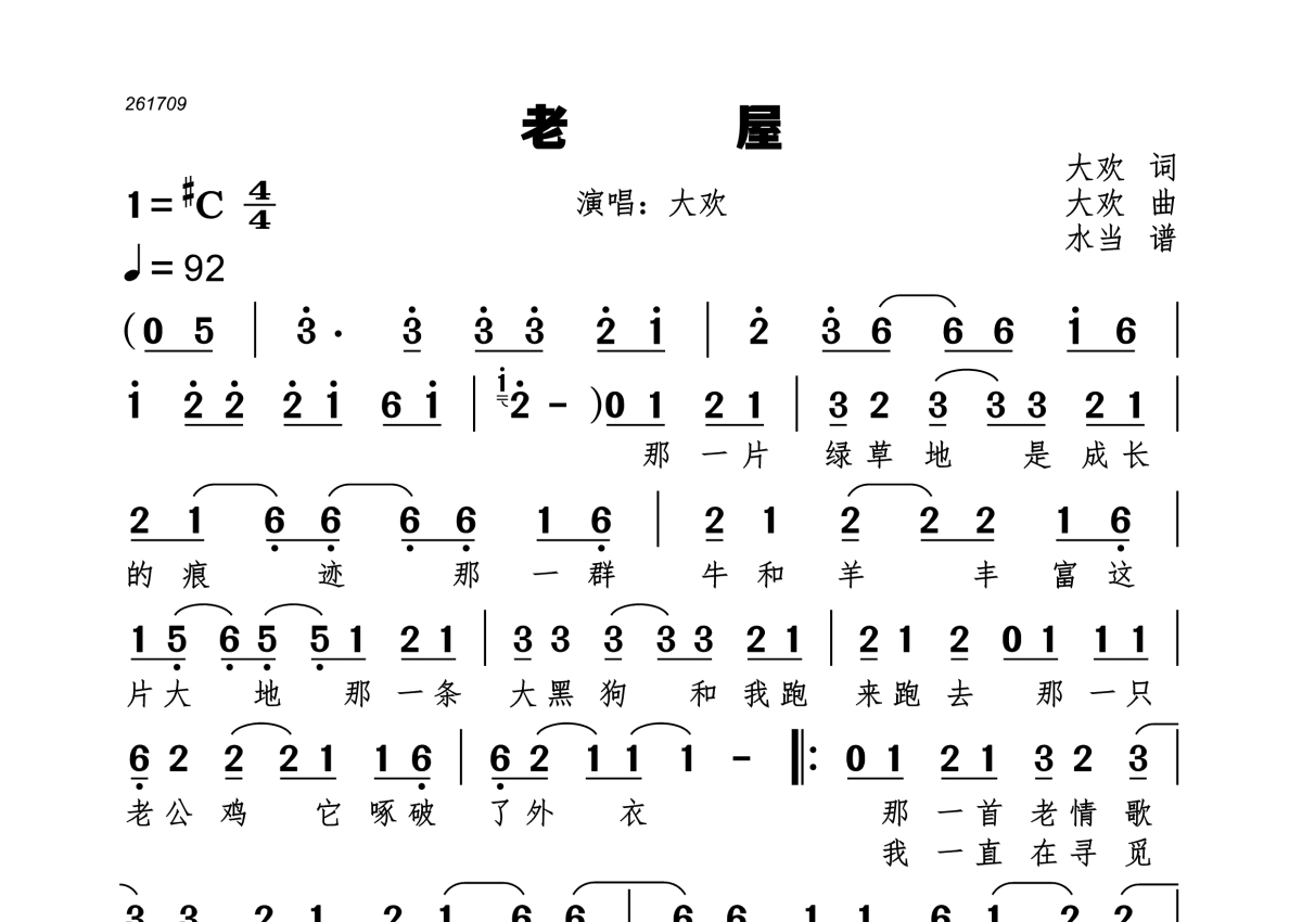 老屋简谱 - 大欢