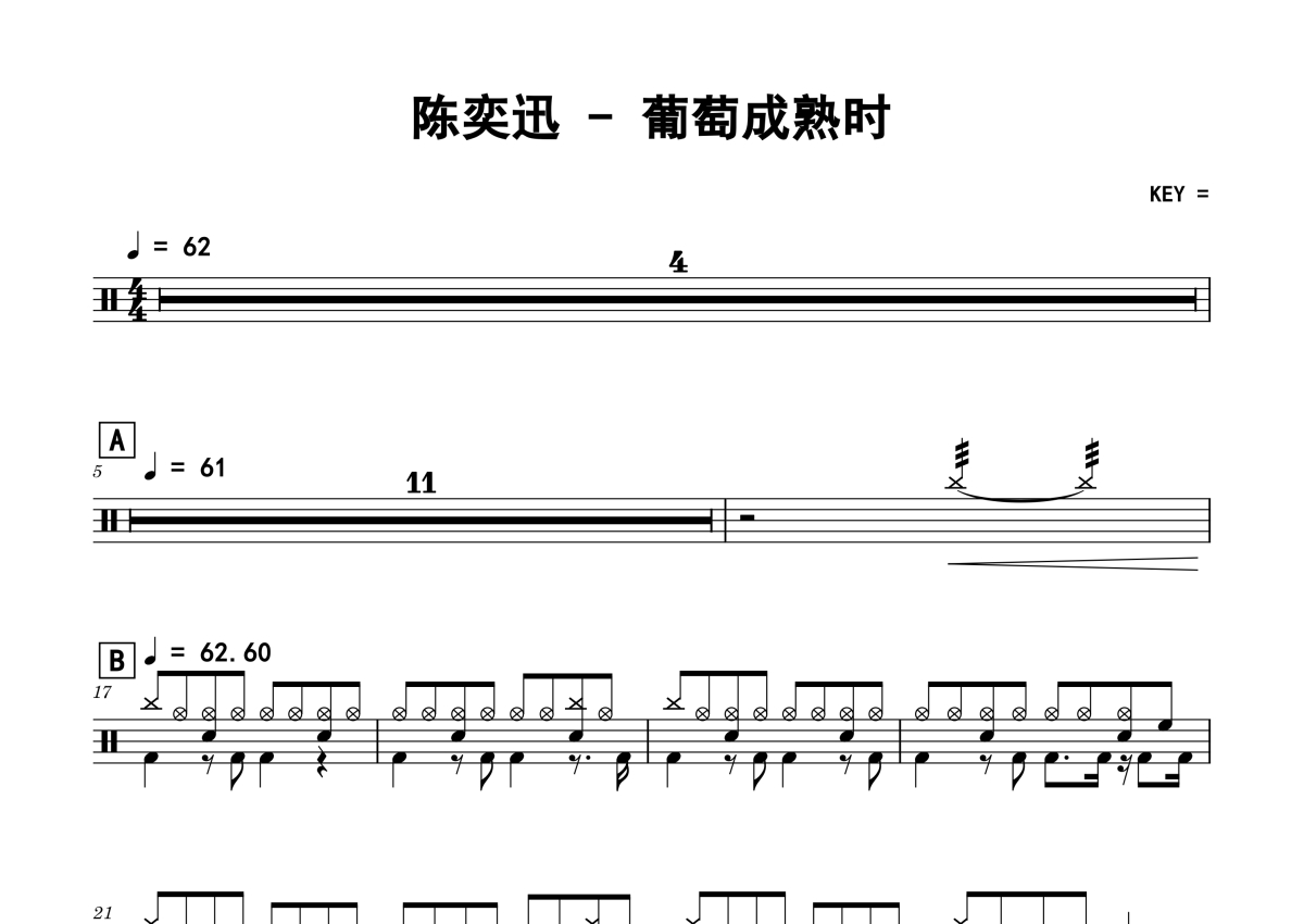 • 葡萄成熟时鼓谱 - 陈奕迅 - 架子鼓谱第1张