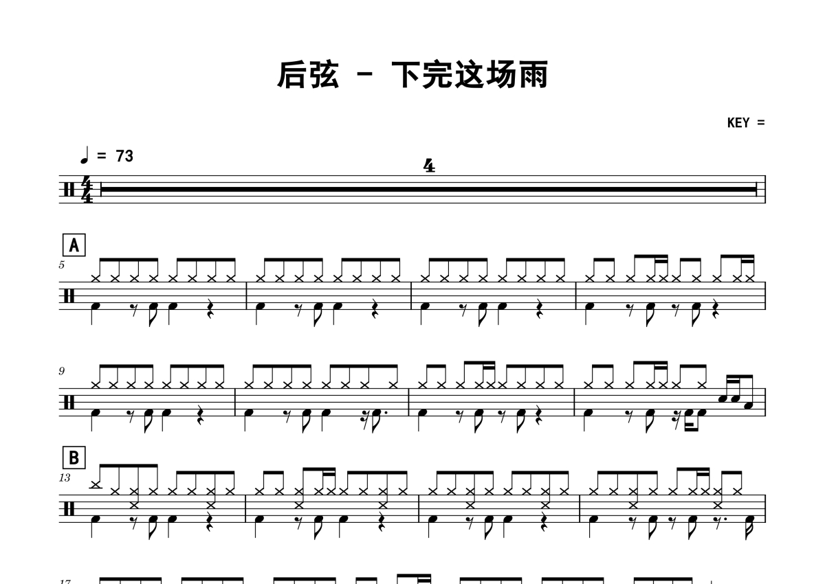 • 下完这场雨鼓谱 - 后弦 - 架子鼓谱第1张