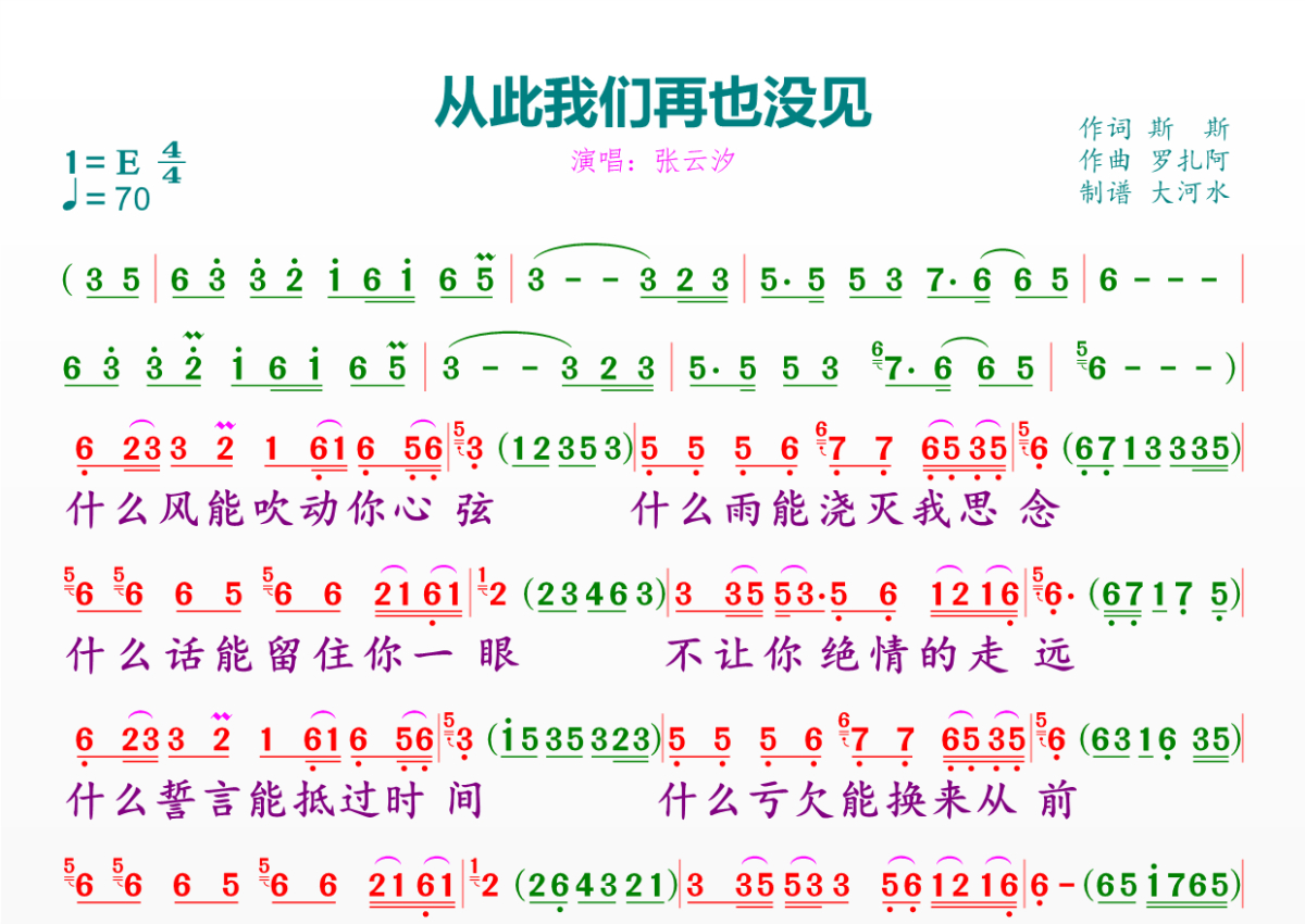 从此我们再也没见简谱 - 张云汐
