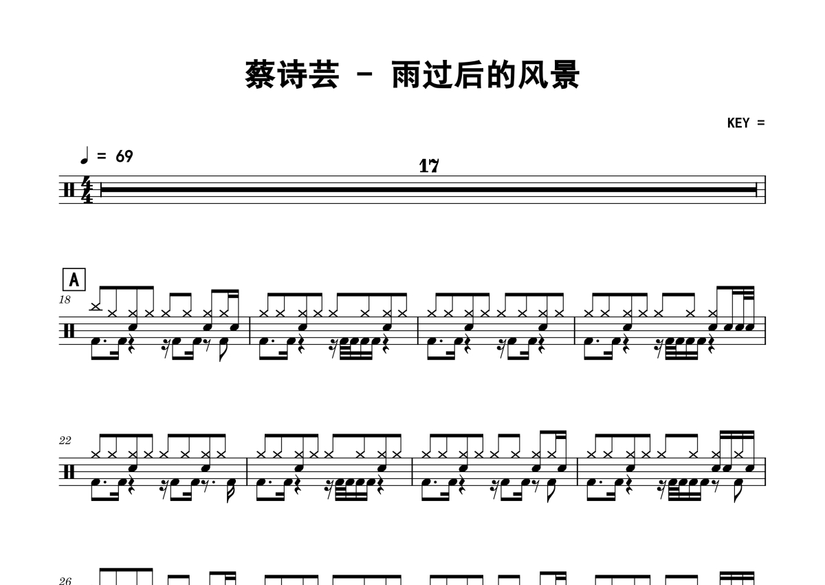 雨过后的风景鼓谱 - 蔡诗芸 - 架子鼓谱