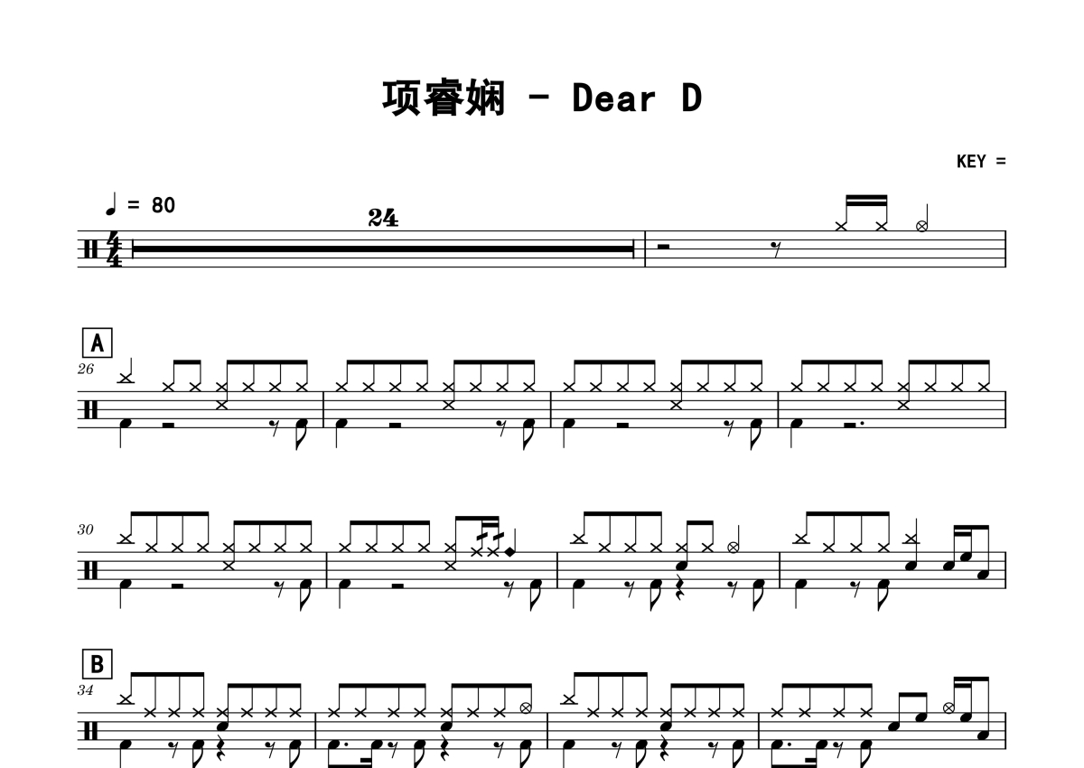 • Dear D鼓谱 - 项睿娴 - 架子鼓谱第1张