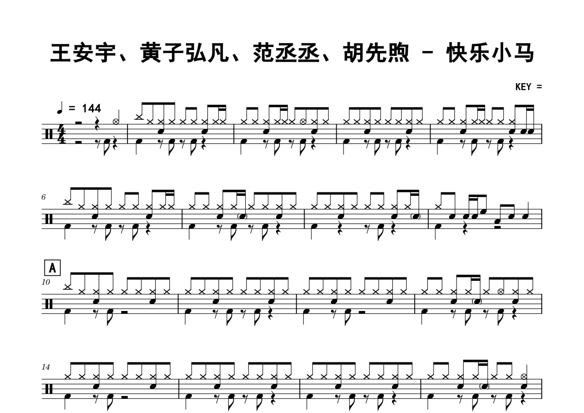 快乐小马鼓谱 - 王安宇、黄子弘凡、范丞丞、胡先煦 - 架子鼓谱
