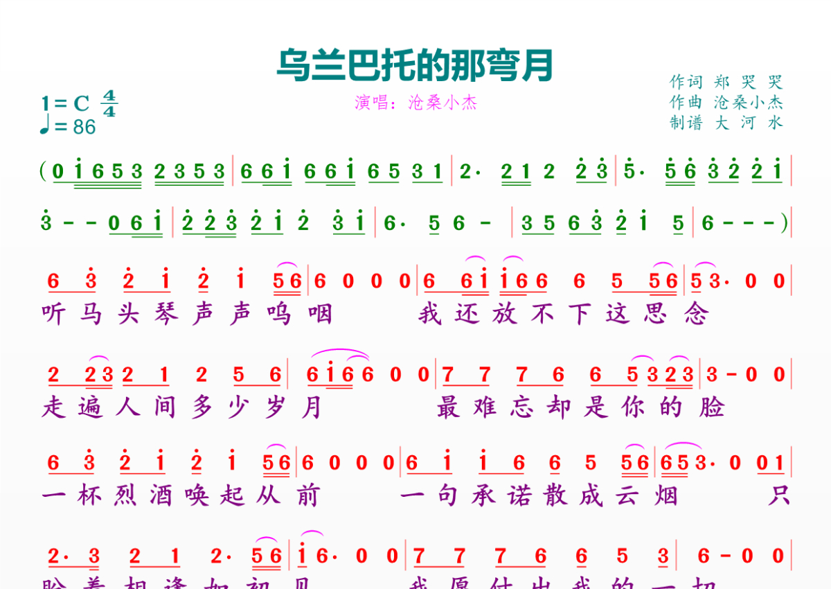 • 乌兰巴托的那弯月简谱 - 沧桑小杰第1张