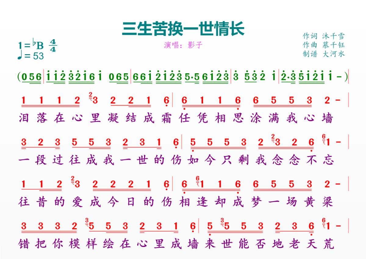 三生苦换一世情长简谱 - 影子