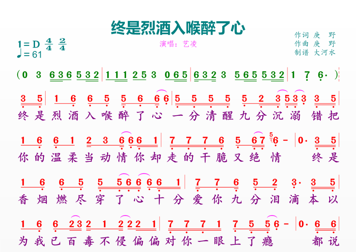 终是烈酒入喉醉了心简谱 - 艺凌