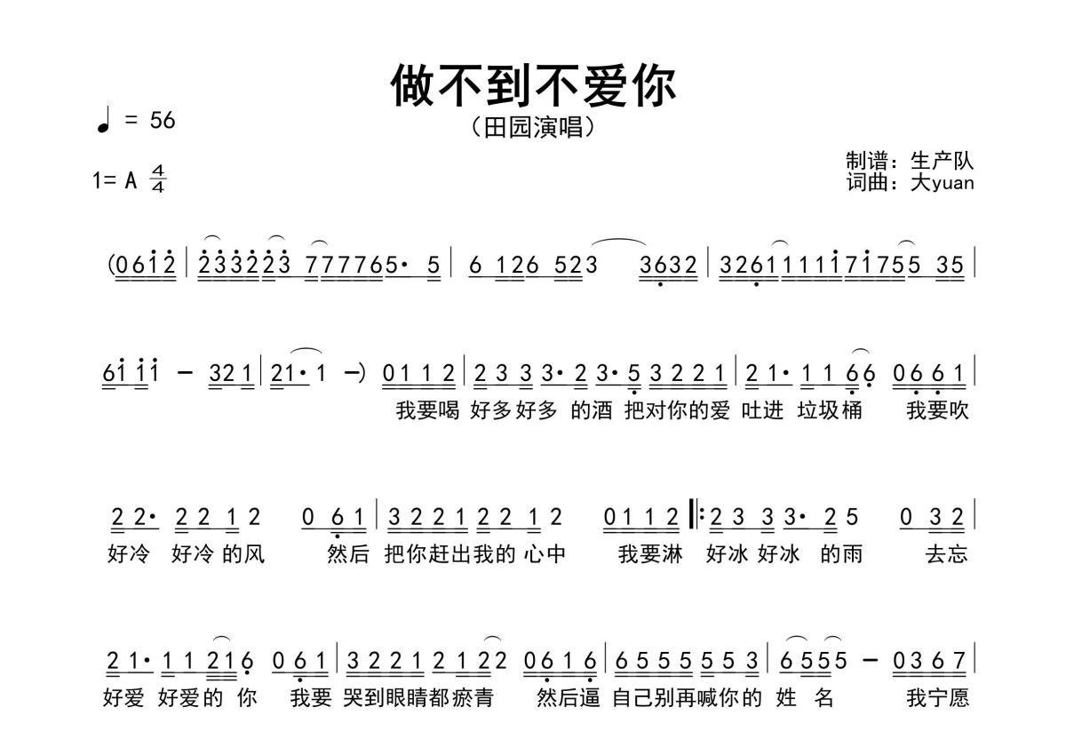 • 做不到不爱你简谱 - 田园 - 原版简谱第1张