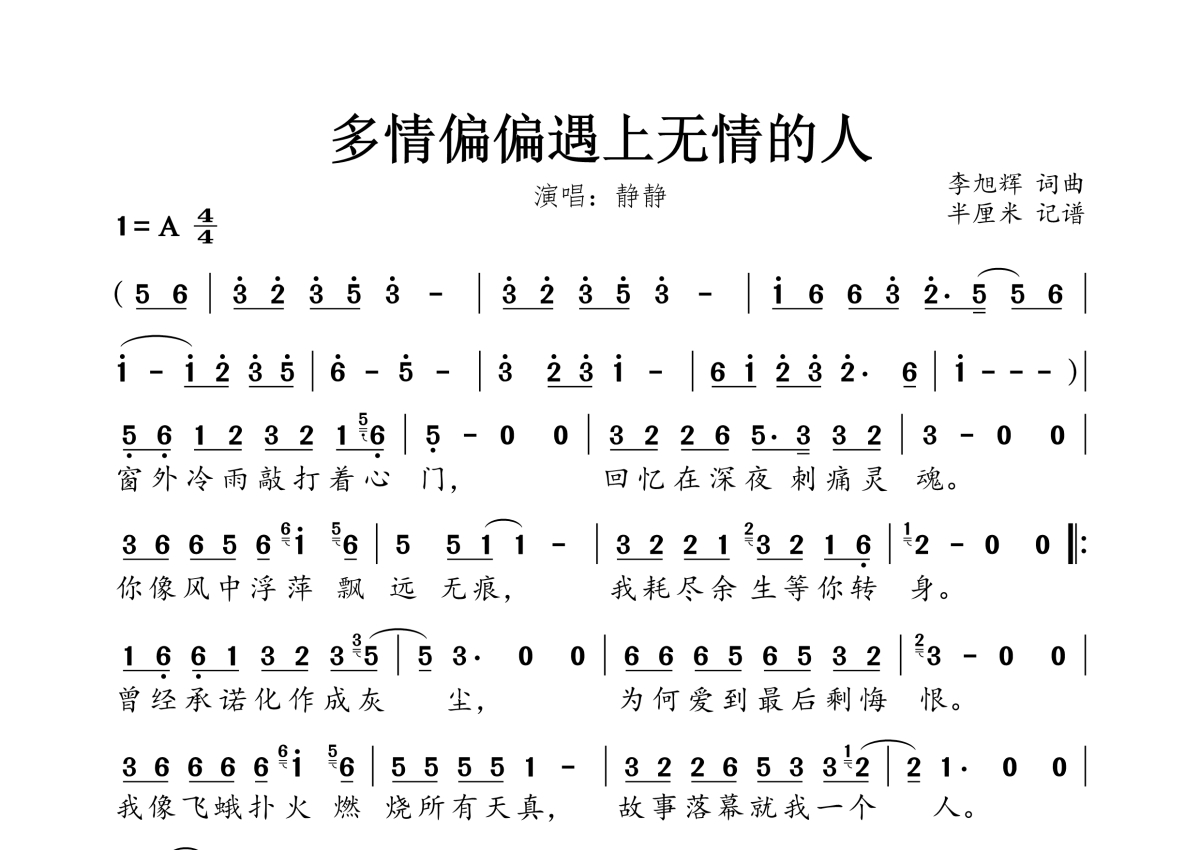 • 多情偏偏遇上无情的人简谱 - 静静第1张