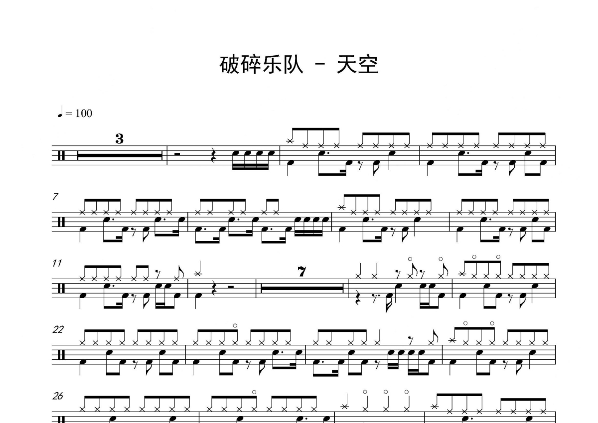• 天空鼓谱 - 破碎乐队 - 架子鼓谱第1张