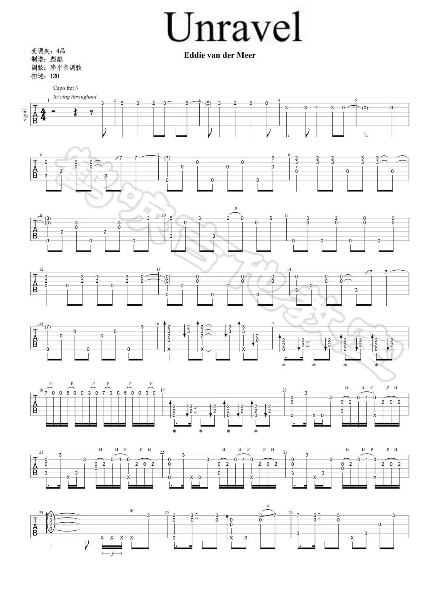 曲谱介绍: Eddie van der Meer《Unravel》吉他谱_吉他独奏谱