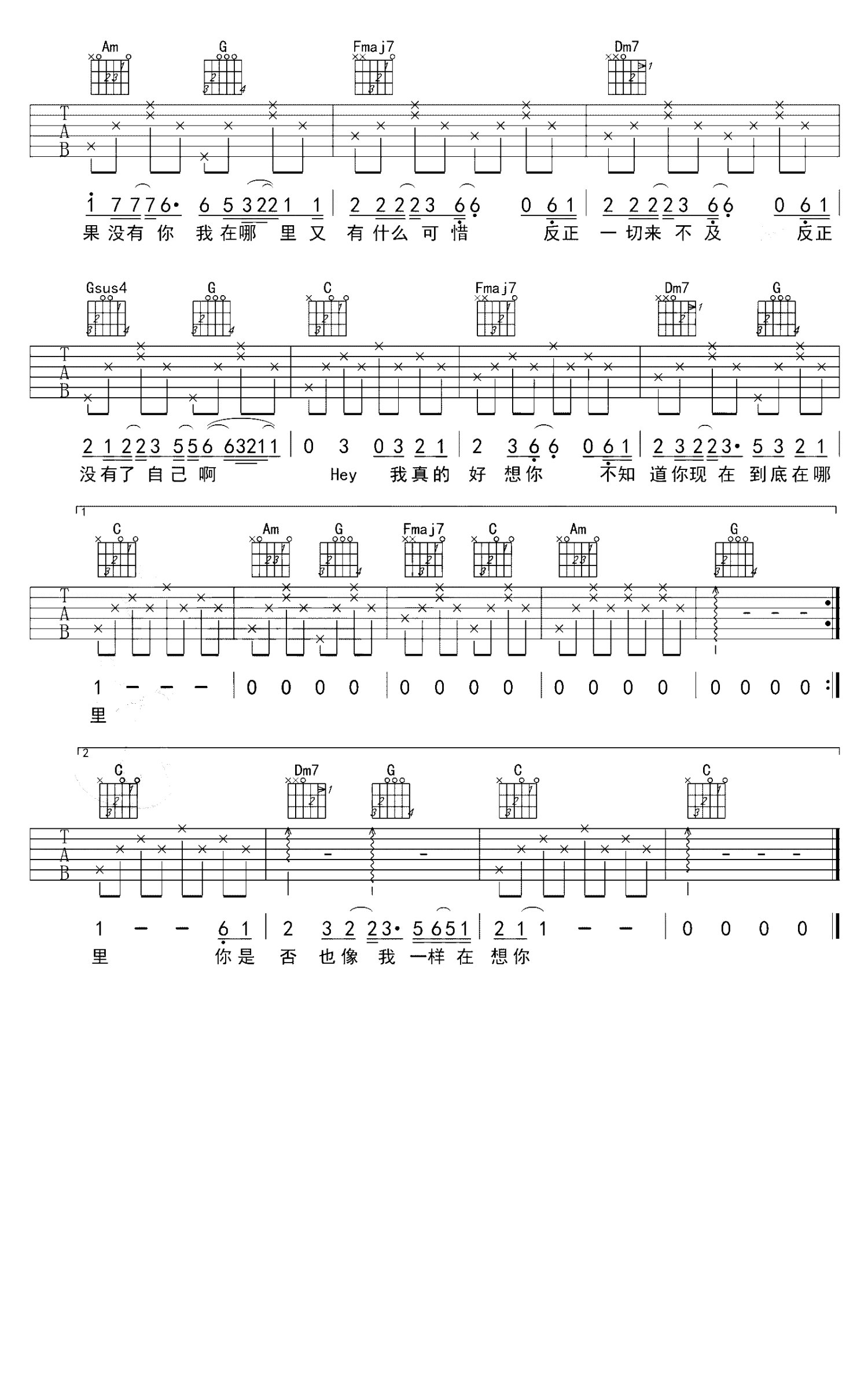 当前位置:琴谱网>吉他弹唱>如果没有你