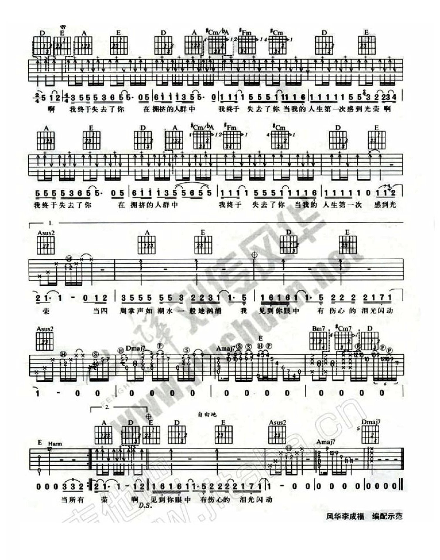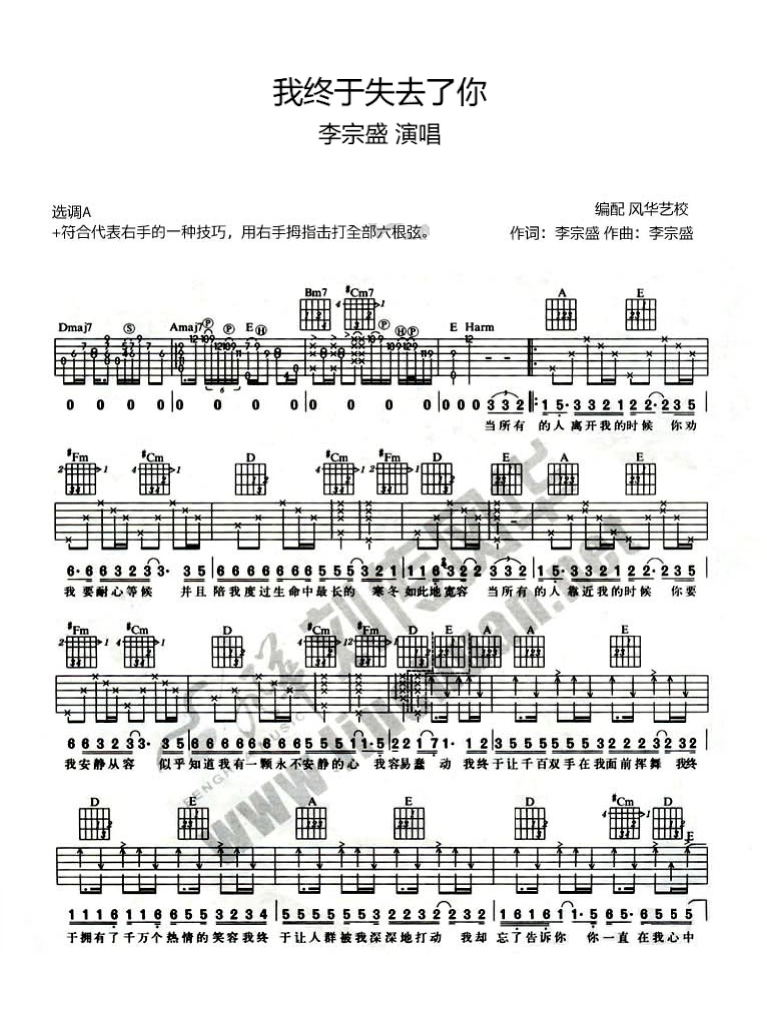 曲谱介绍: 李宗盛《我终于失去了你》吉他弹唱谱,采用A调指法编配,风华艺校编配出品,共有2张高清图谱,免翻页排版设计。