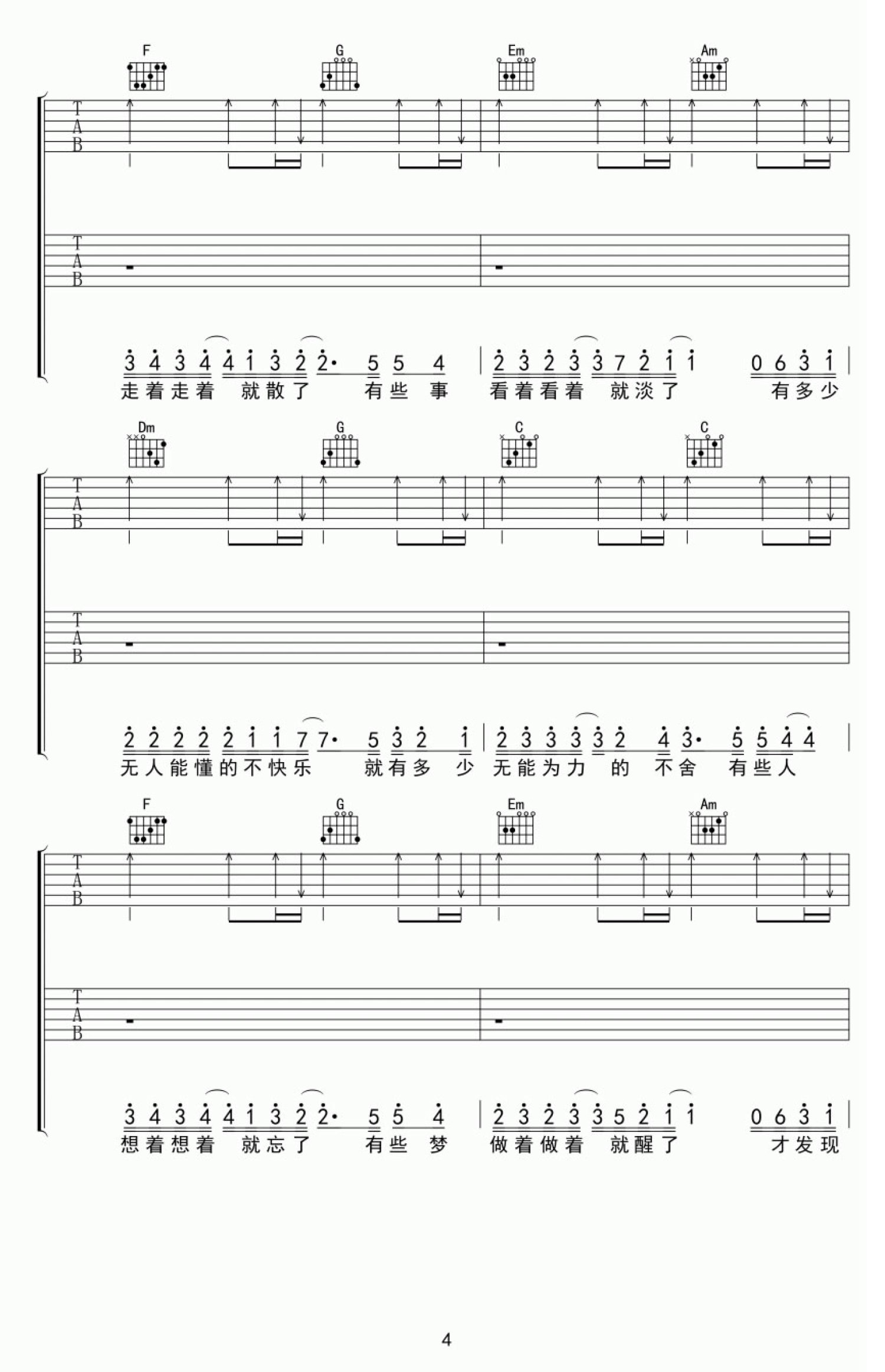 当前位置:琴谱网>吉他弹唱>走着走着就散了