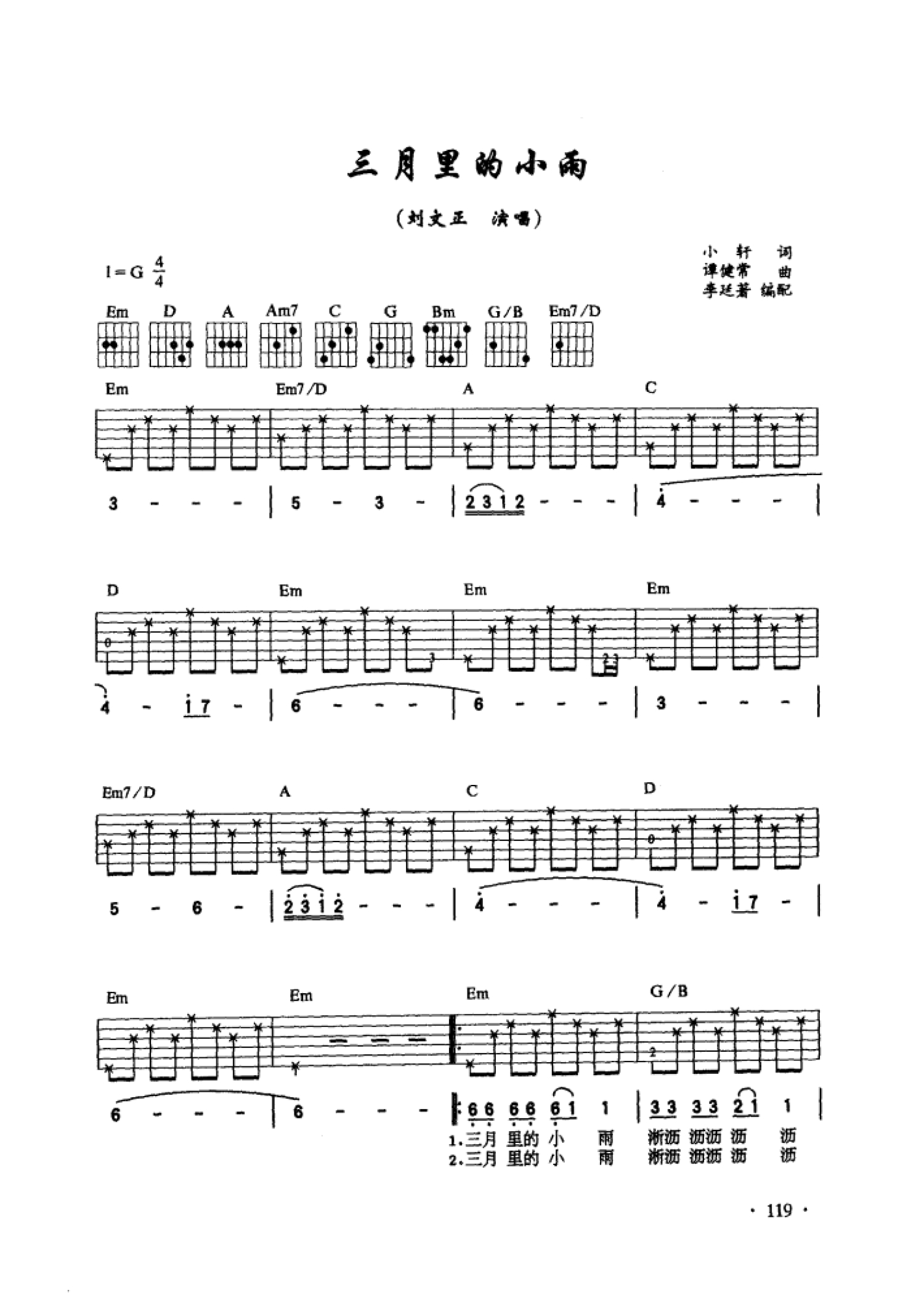 曲谱介绍: 刘文正《三月里的小雨》吉他谱_吉他弹唱谱