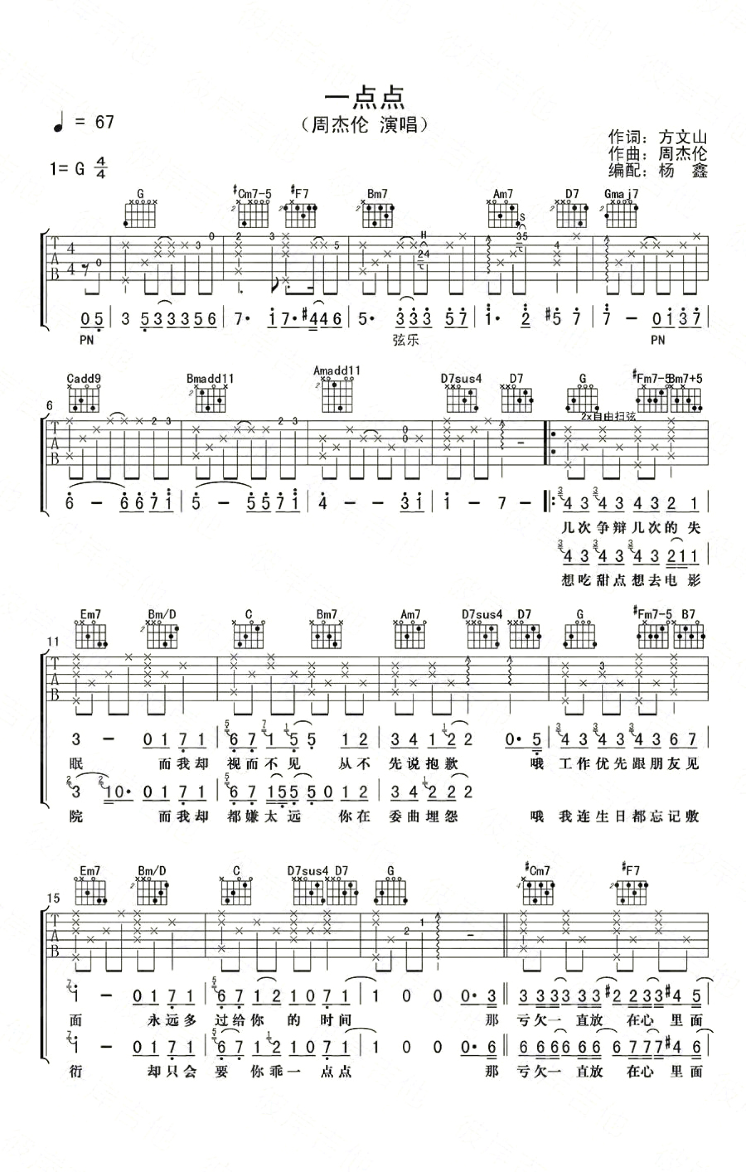 一点点吉他谱 - 周杰伦 - G调吉他弹唱谱