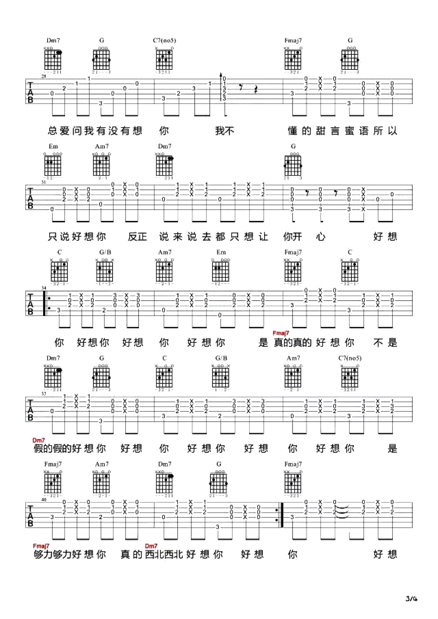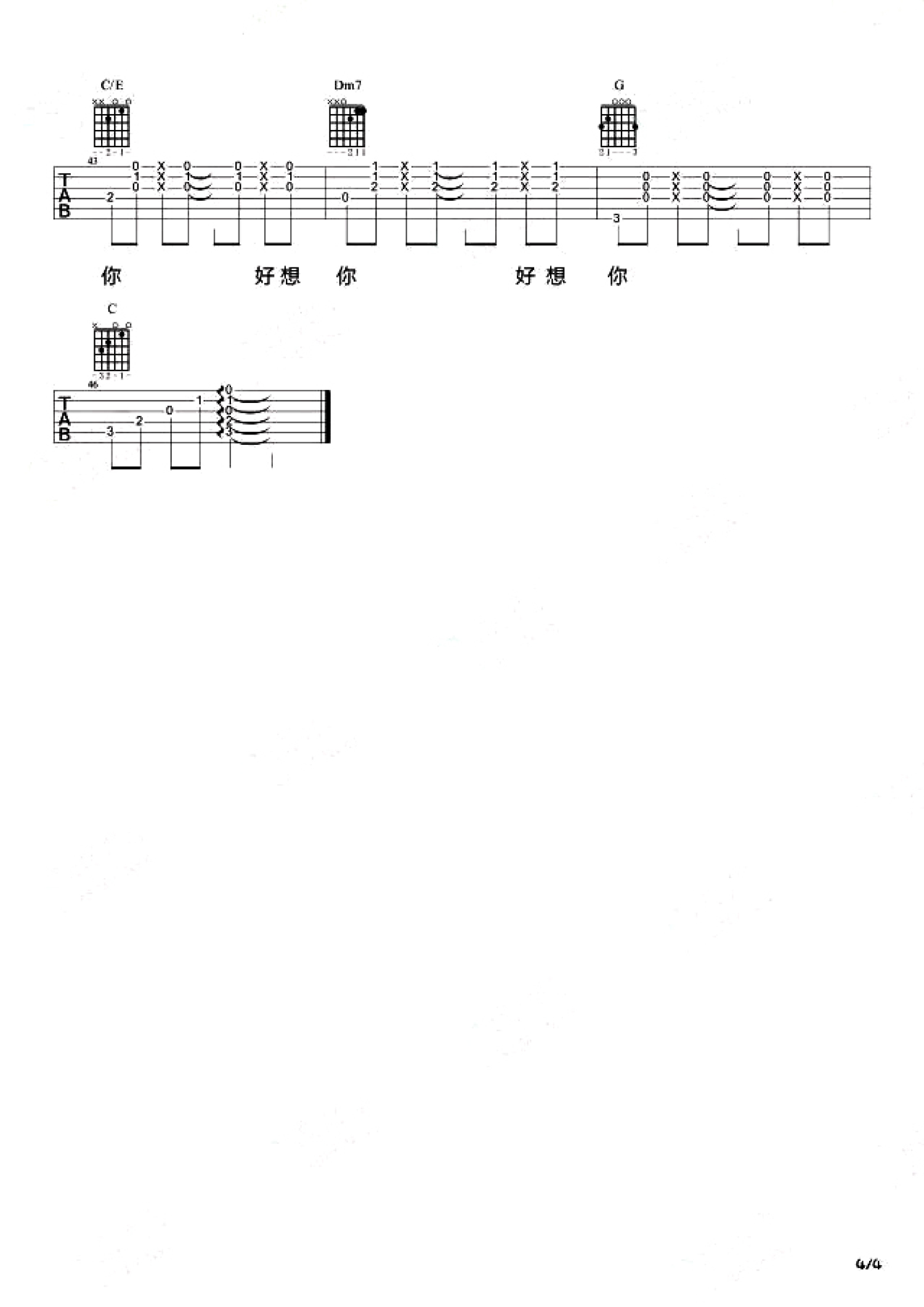 好想你吉他谱 - 四叶草 - 吉他弹唱谱
