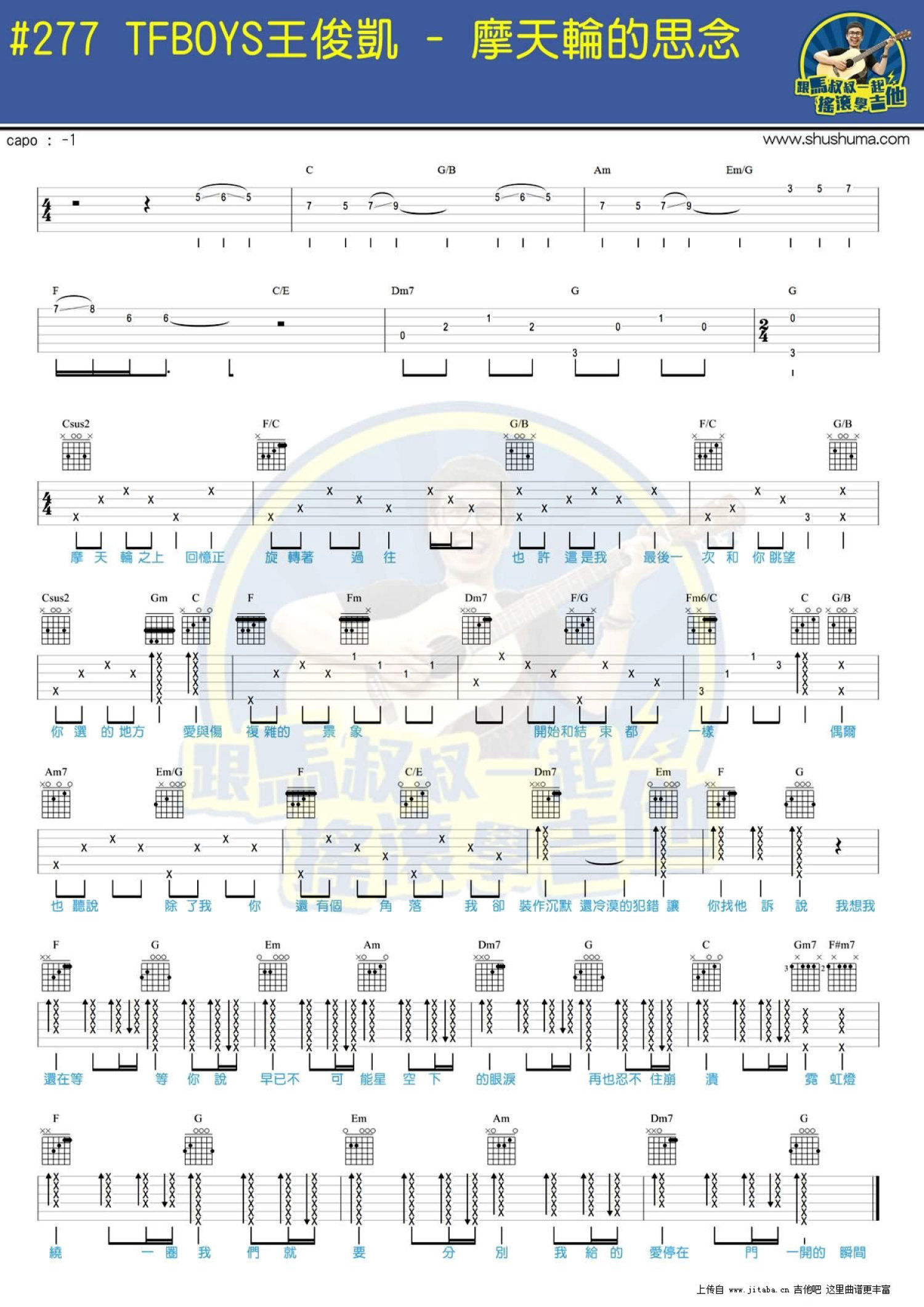 摩天轮的思念吉他谱 - TFBOYS王俊凯 - 吉他弹唱谱