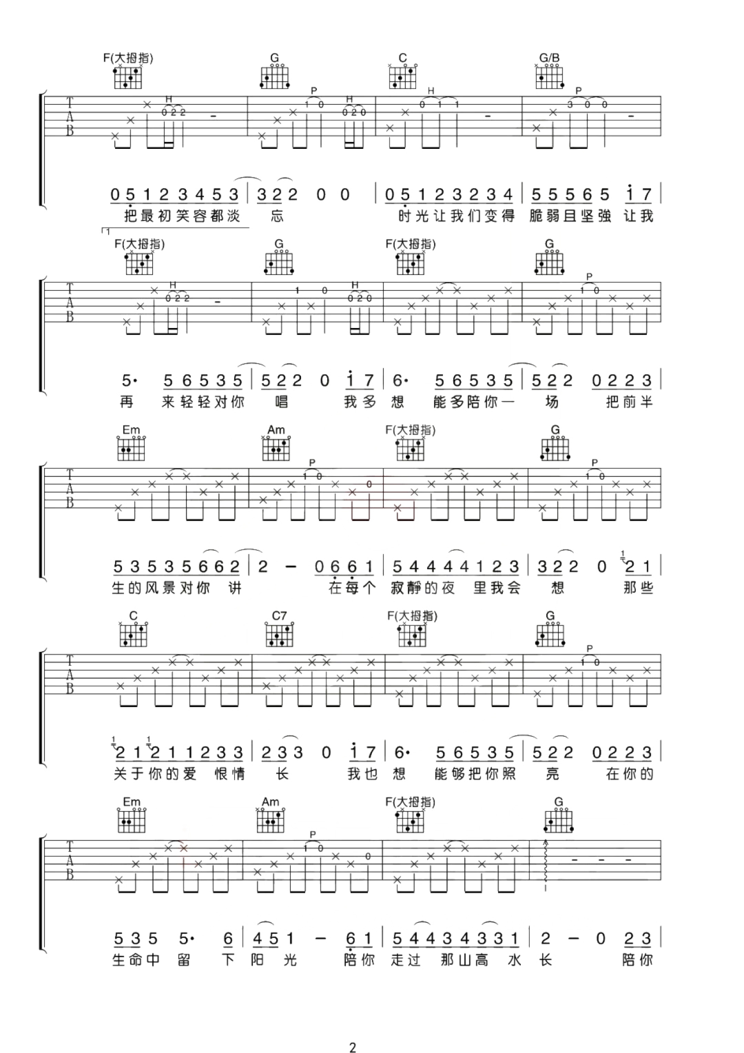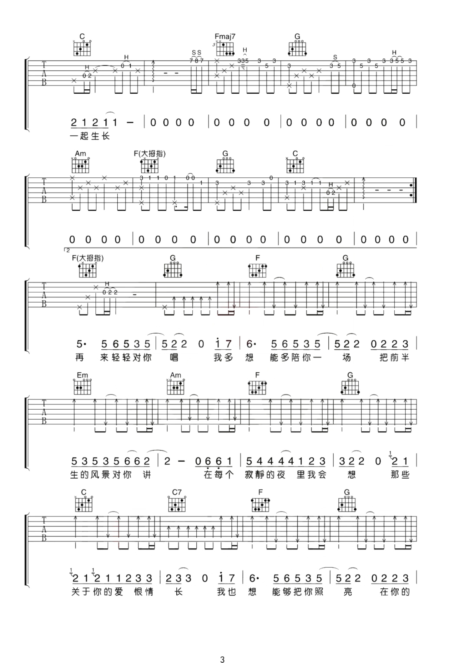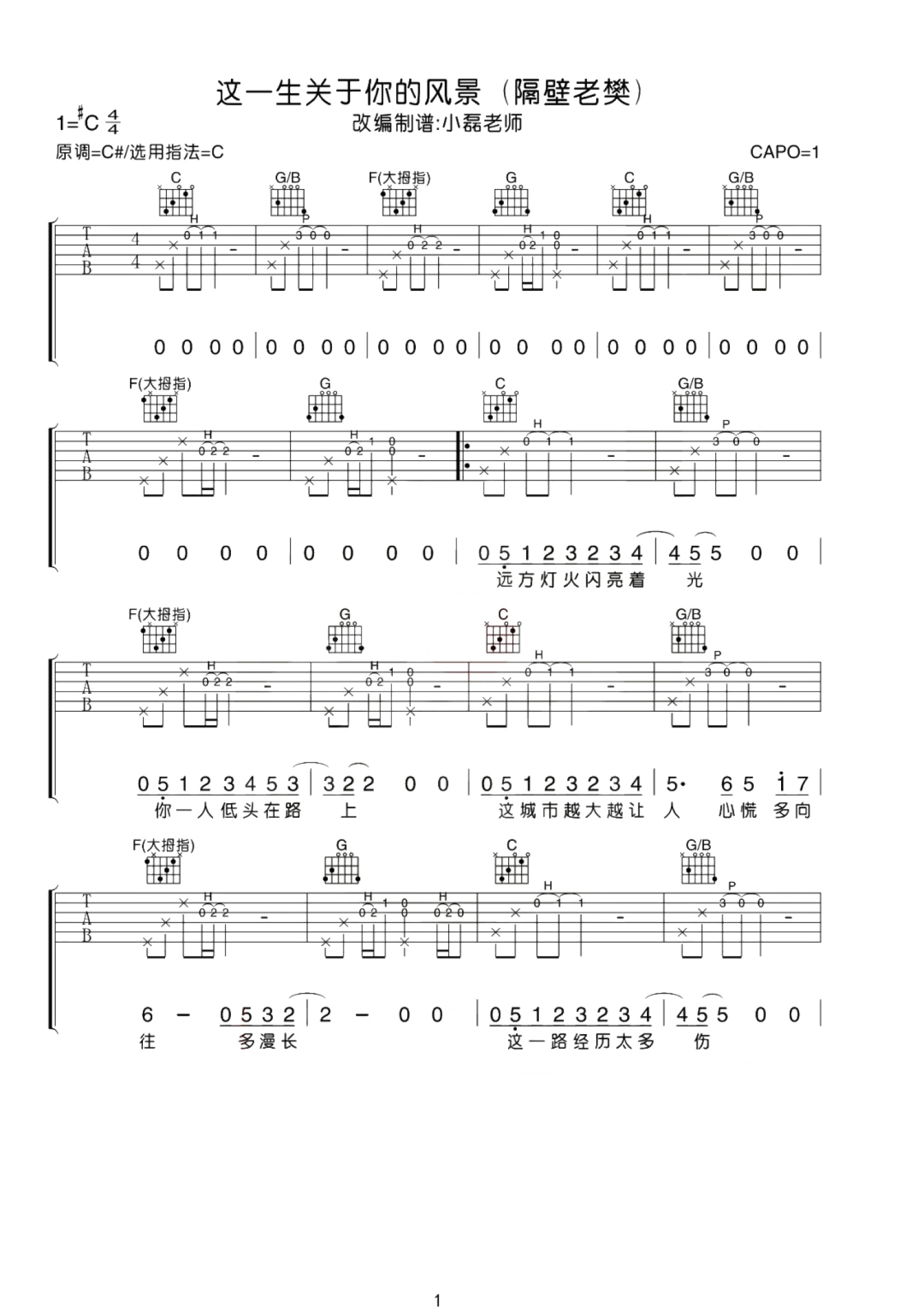 曲谱介绍: 隔壁老樊《这一生关于你的风景》吉他谱_C调吉他弹唱谱