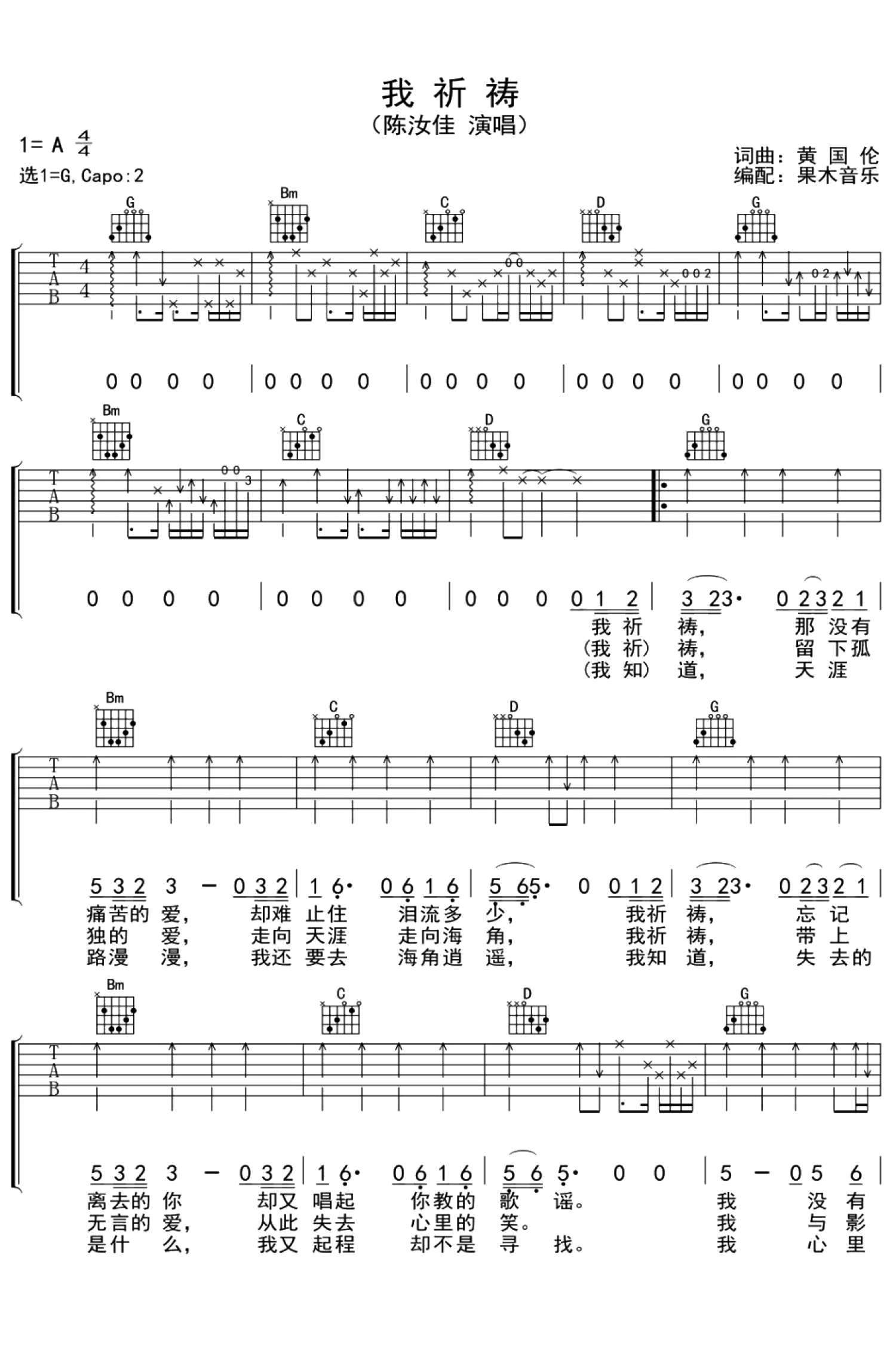 我祈祷吉他谱 - 陈汝佳 - C调吉他弹唱谱