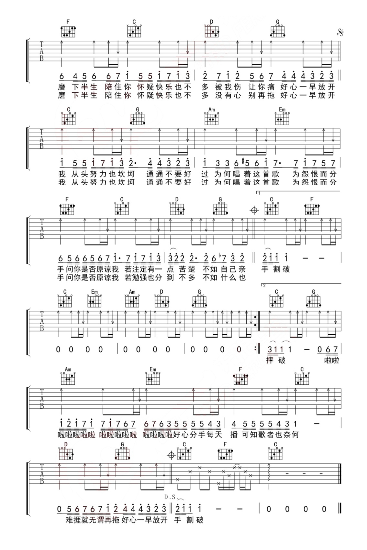 当前位置:琴谱网>吉他弹唱>好心分手
