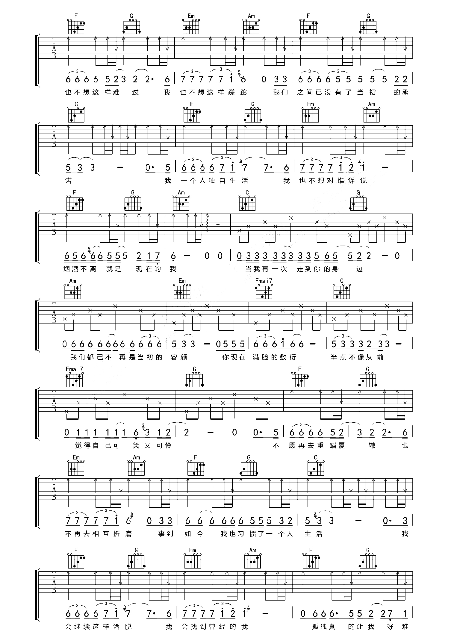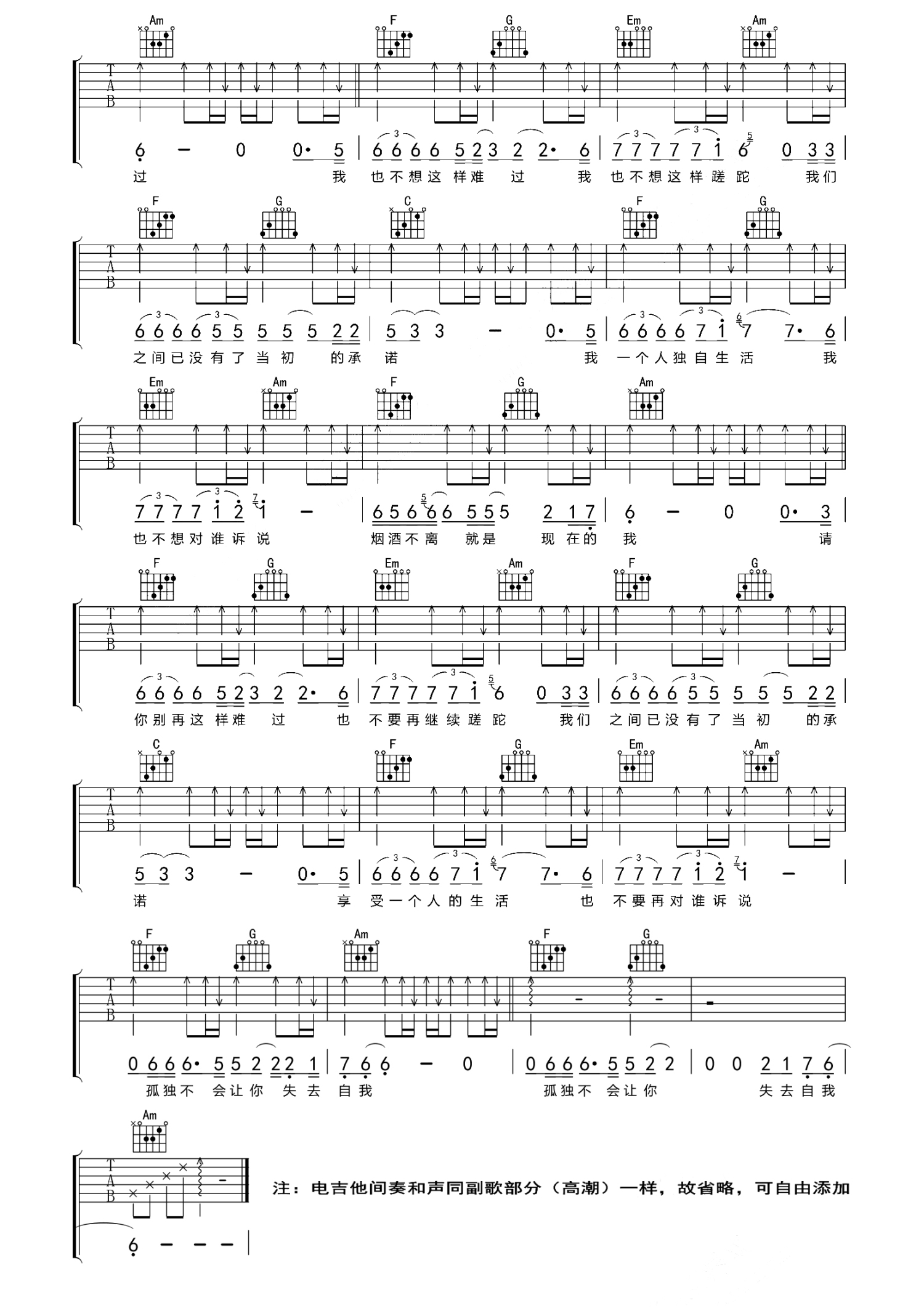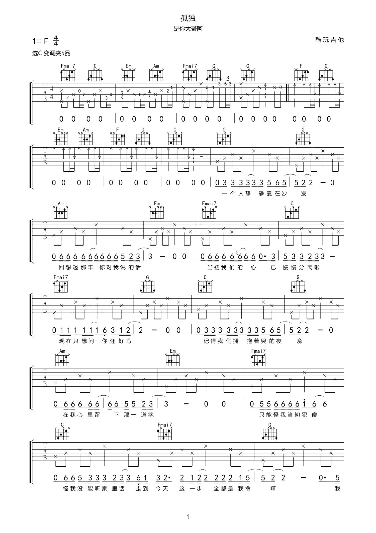 曲谱介绍: 是大哥啊《孤独》吉他谱_C调吉他弹唱谱