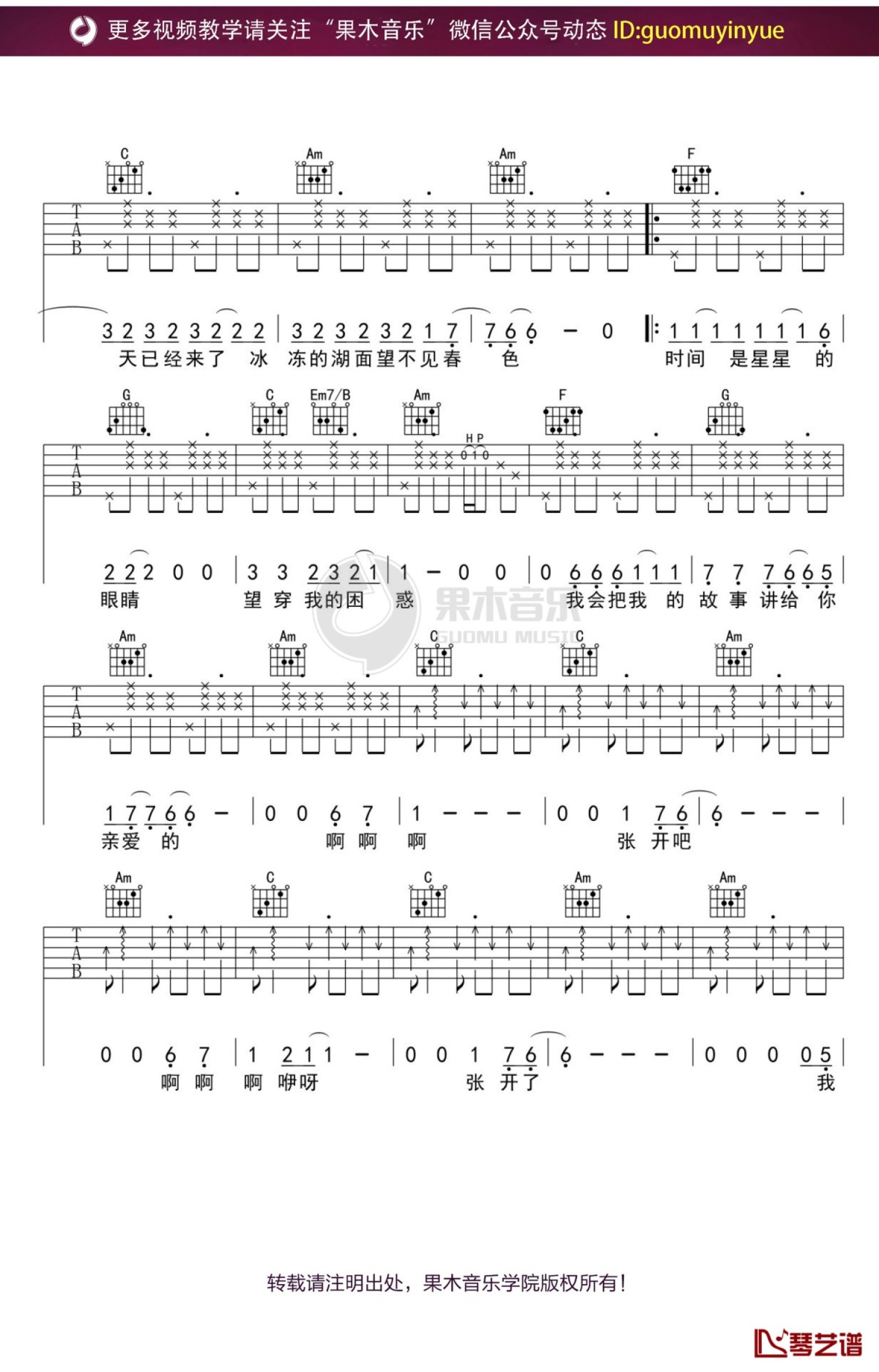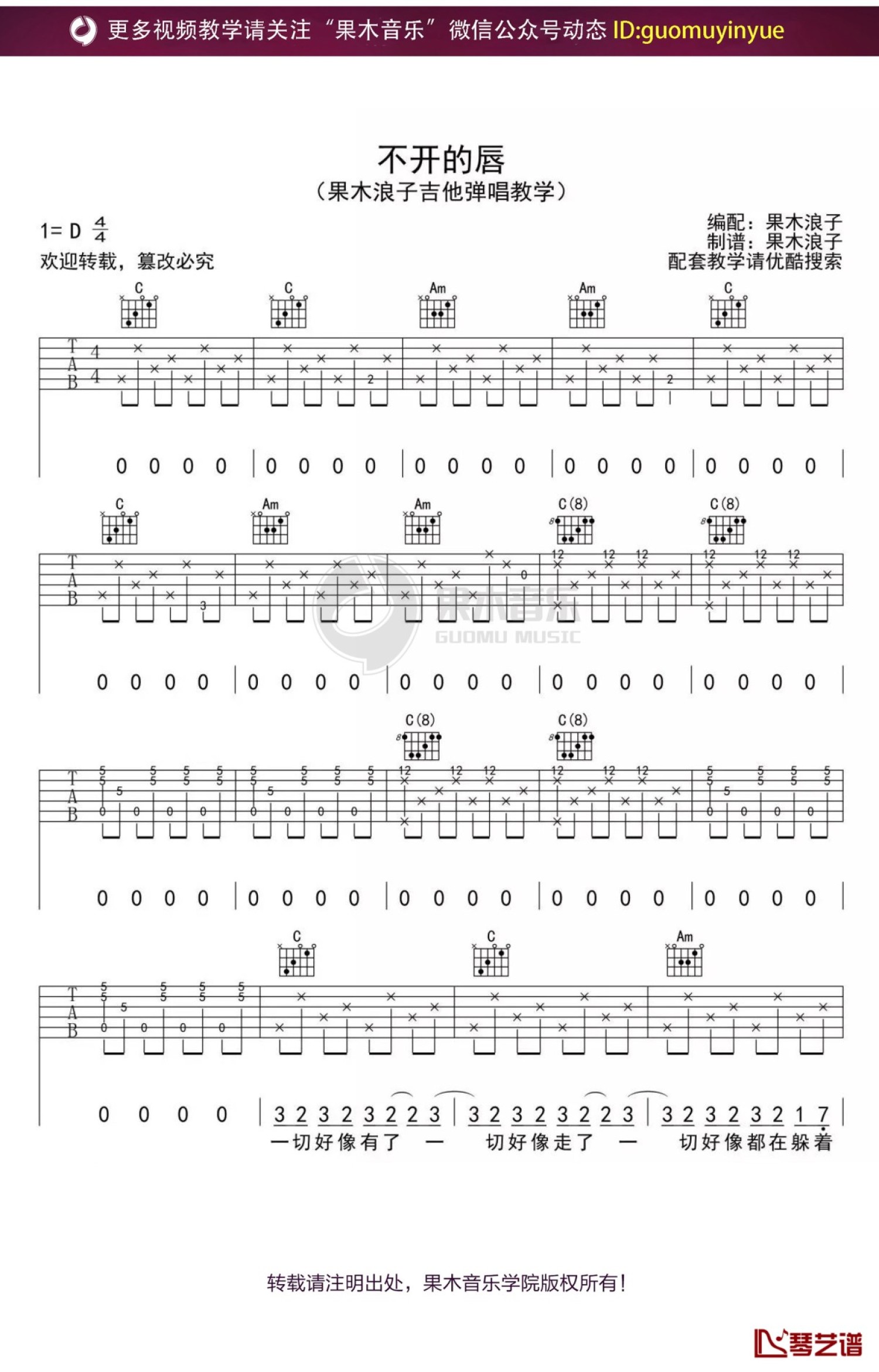 当前位置:琴谱网>吉他弹唱>不开的唇