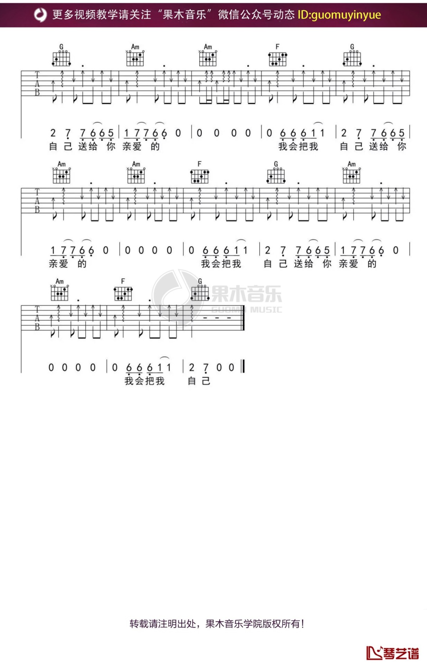 琴谱网尊重作者版权,不会私自去掉作者提供的水印,此类图谱如需去掉水印,请自行去除后,通过站内自助上传打印即可。