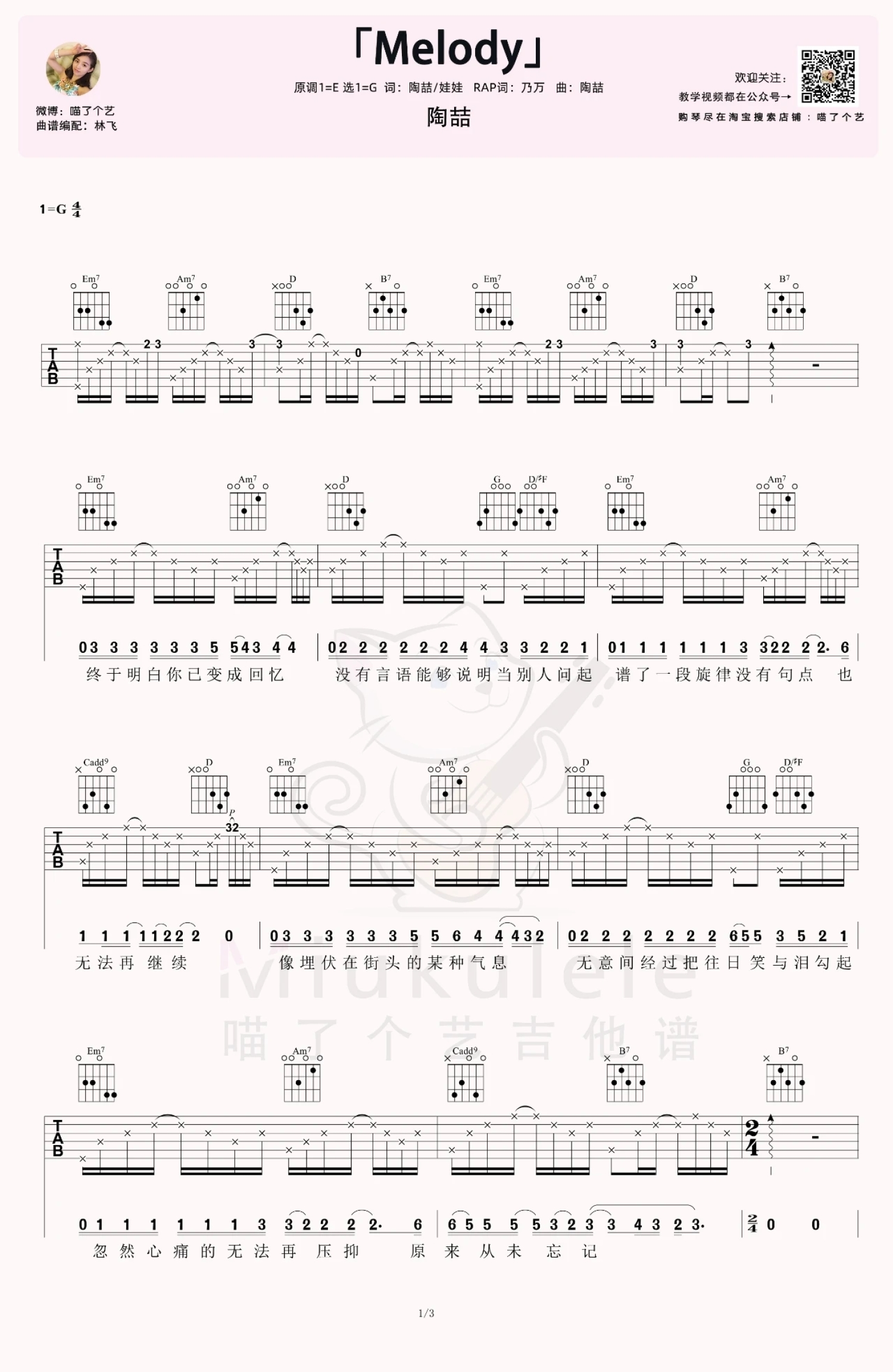 melody吉他谱 - 陶喆 - G调吉他弹唱谱
