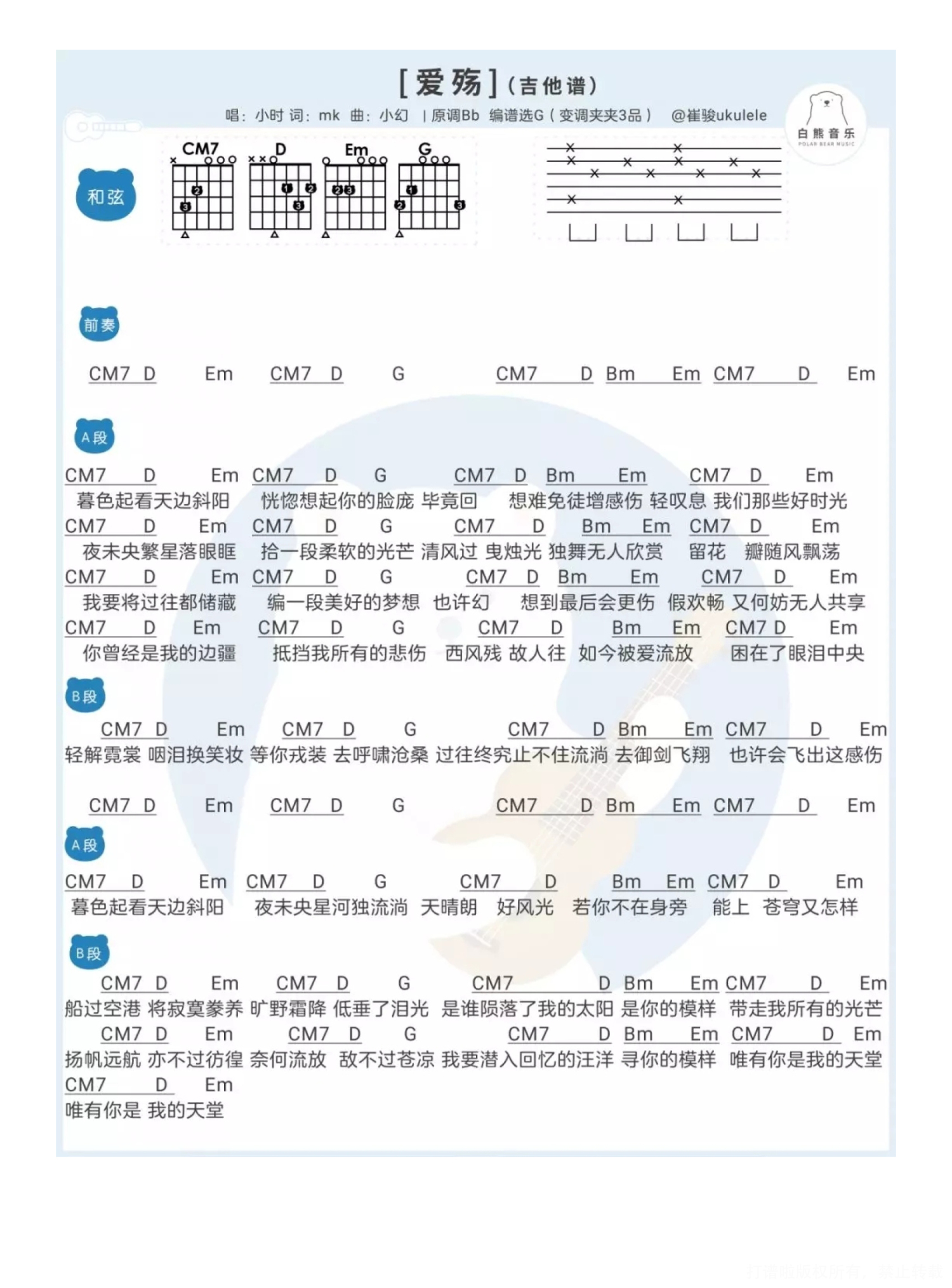 曲谱介绍: 小时《爱殇》吉他谱_C调吉他弹唱谱_和弦谱