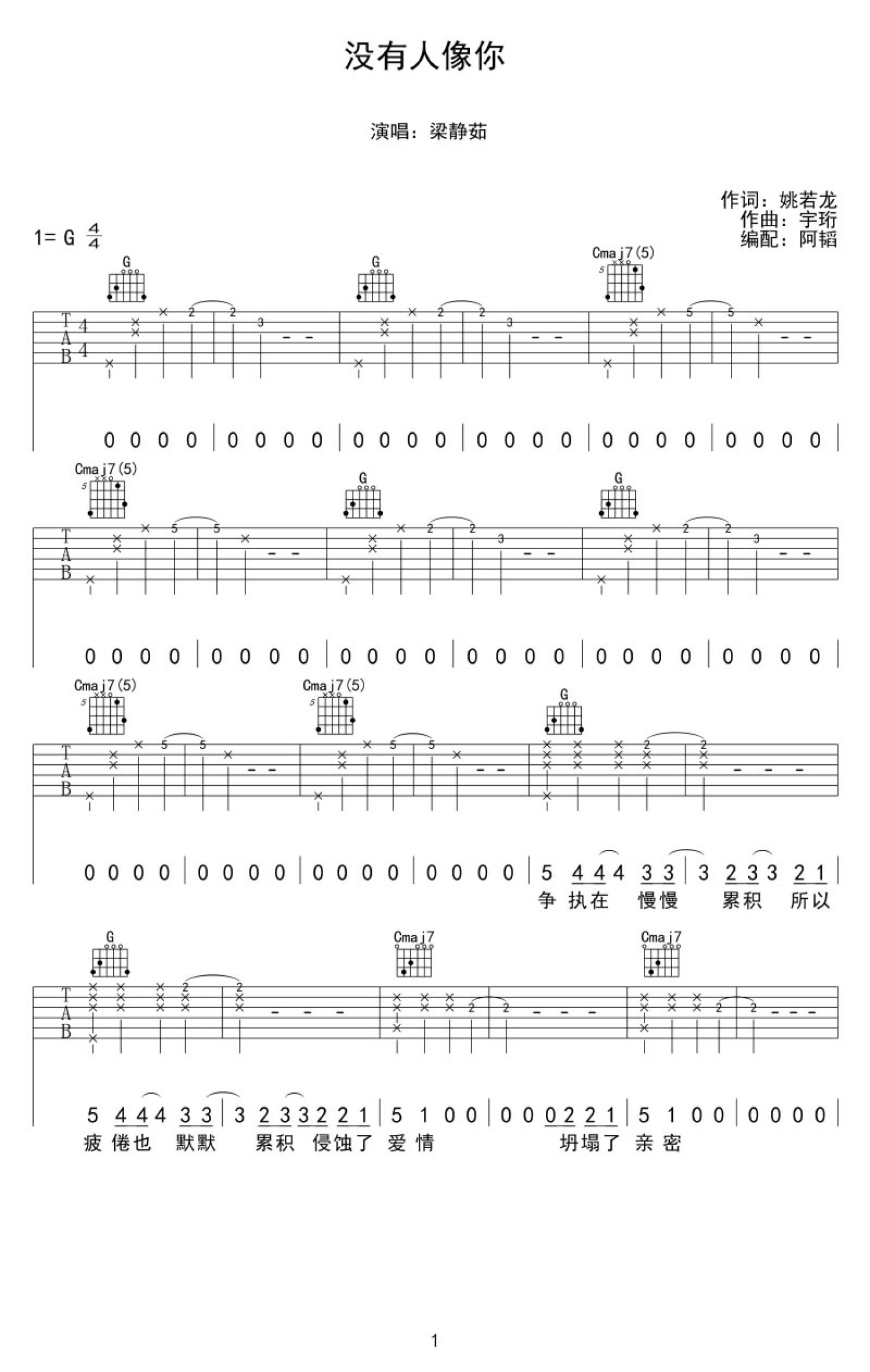 没有人像你吉他谱 - 梁静茹 - G调吉他弹唱谱