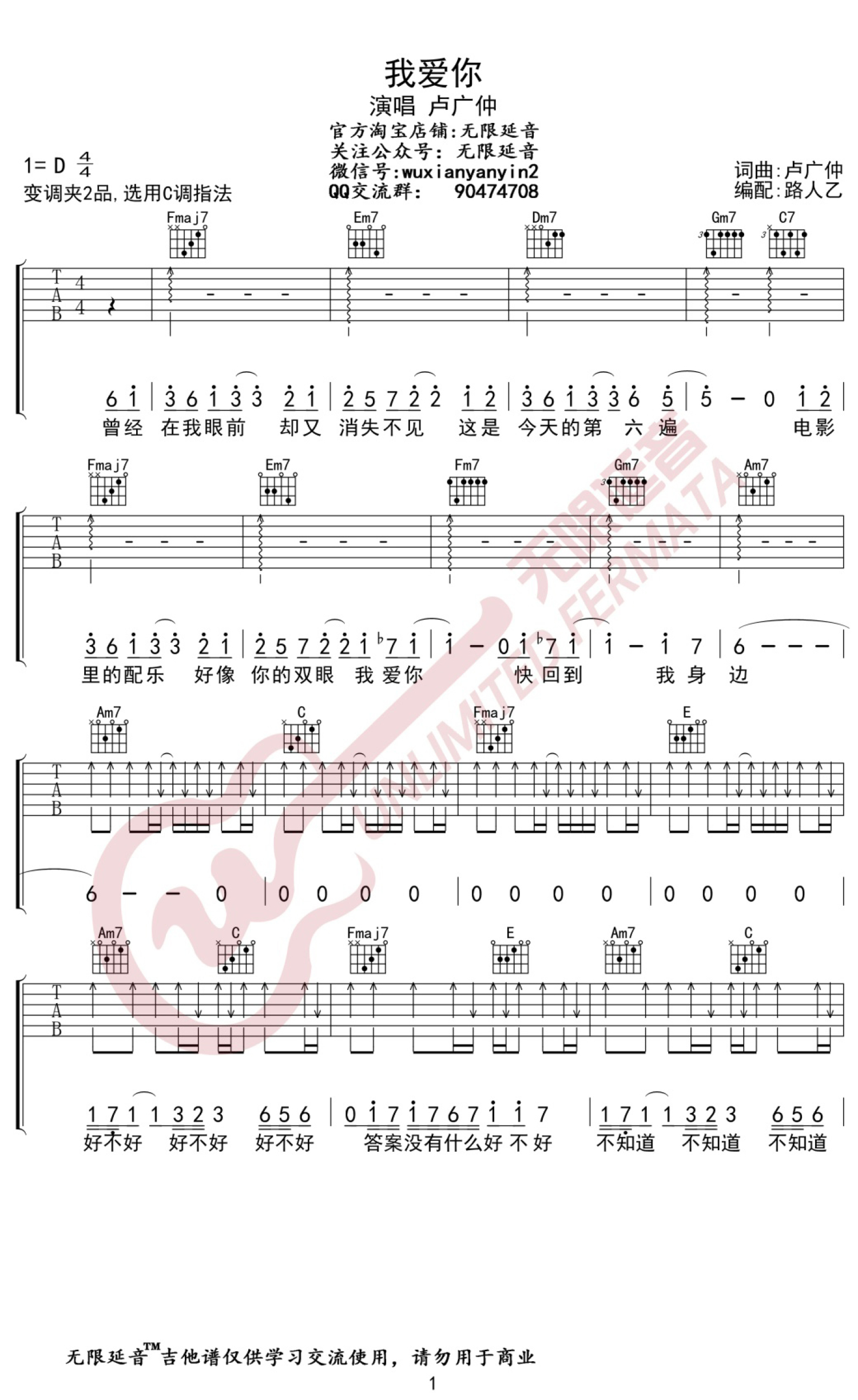 吉他弹唱C调来源:无限延音3097 浏览2020-07-10 22:52发布图谱共4页