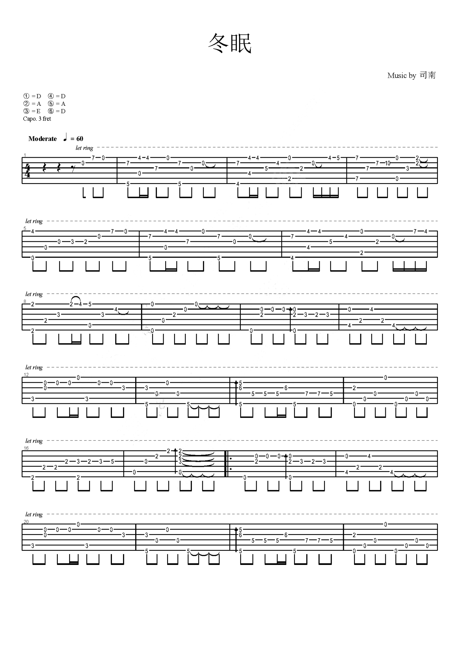 曲谱介绍: 司南《冬眠》吉他谱_吉他独奏谱