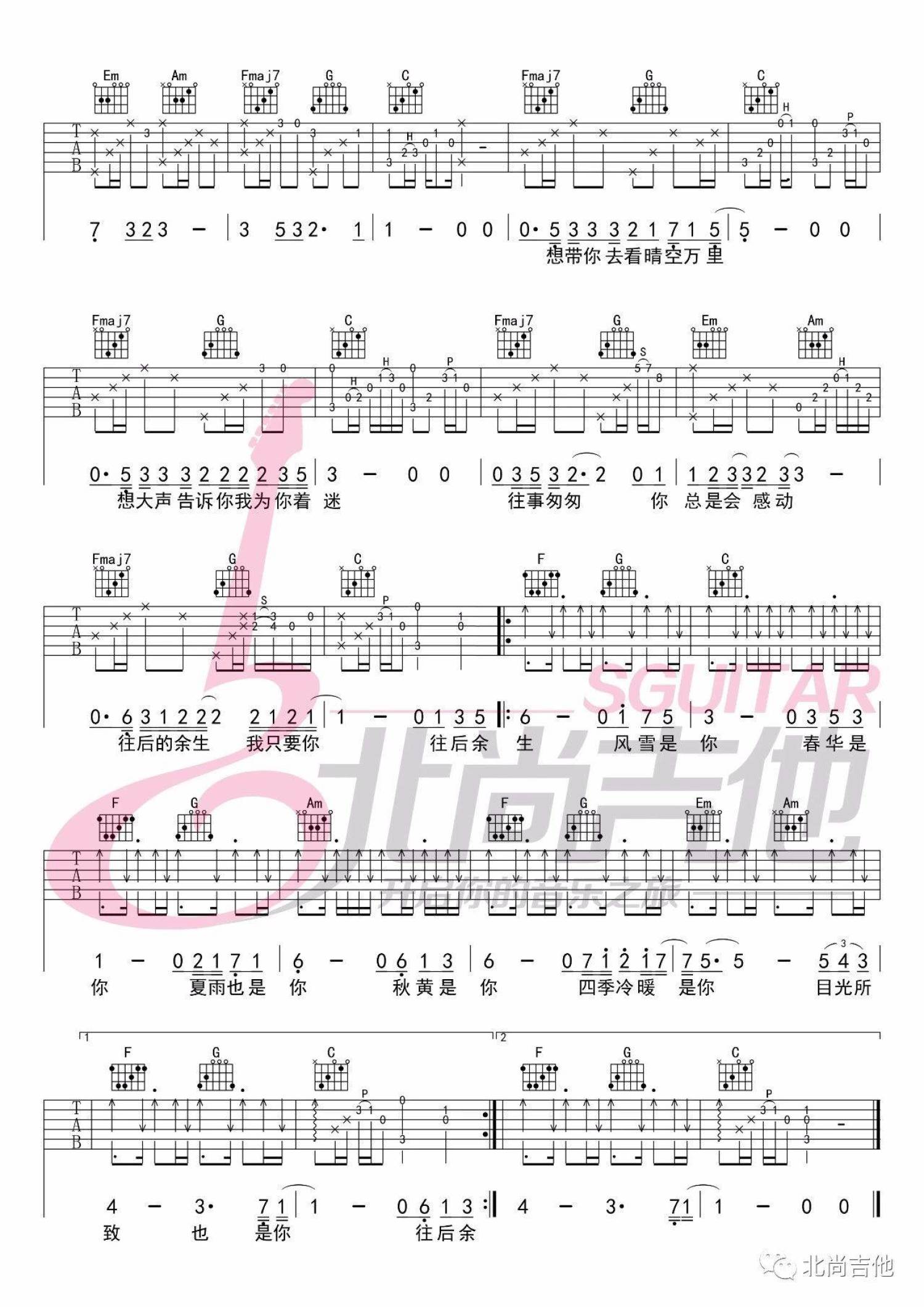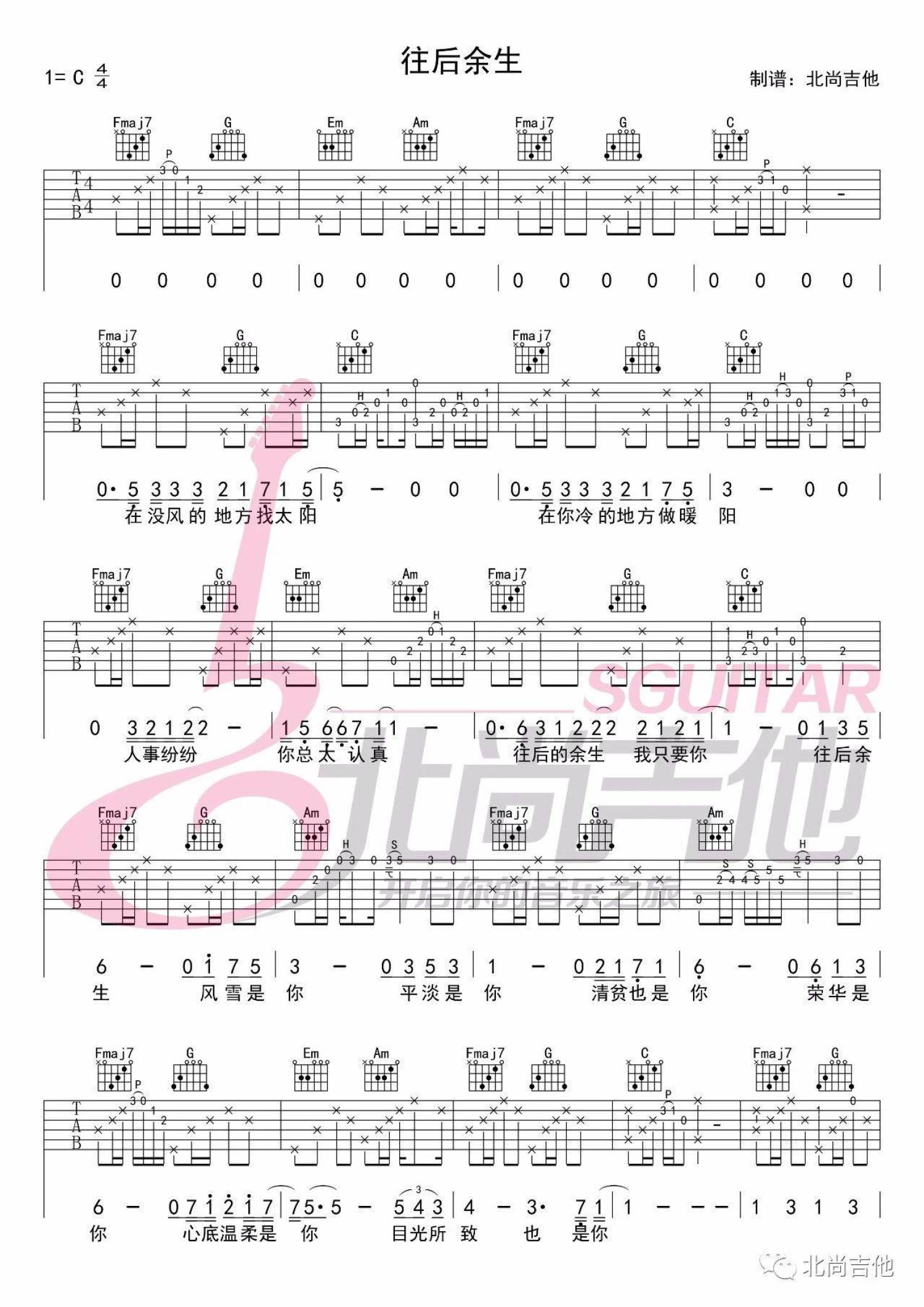 往后余生吉他谱 - 马良 - C调吉他弹唱谱 - 炫酷版