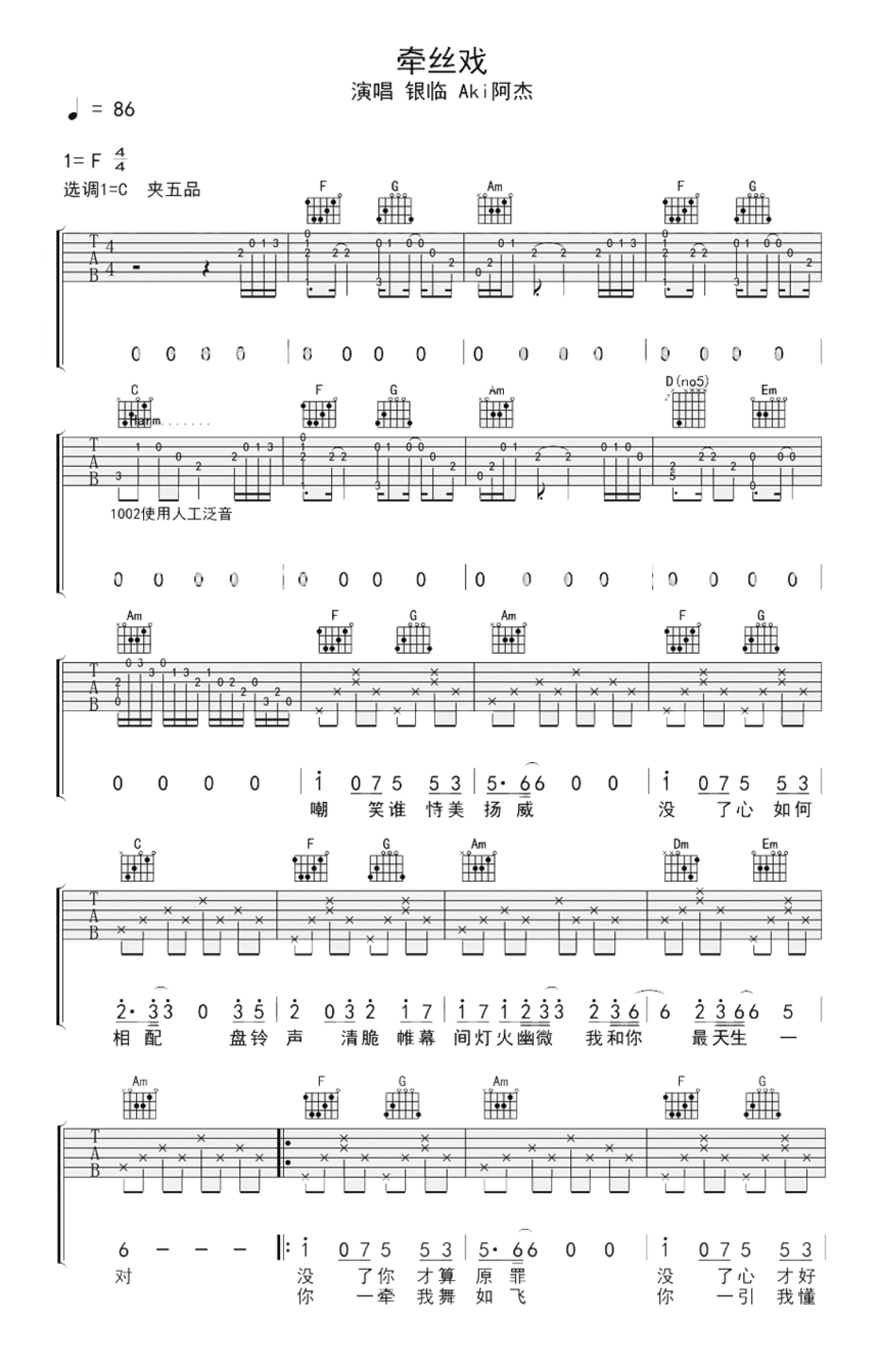 吉他弹唱C调来源:SlimBoogie1387 浏览2018-03-19 13:34发布图谱共3页