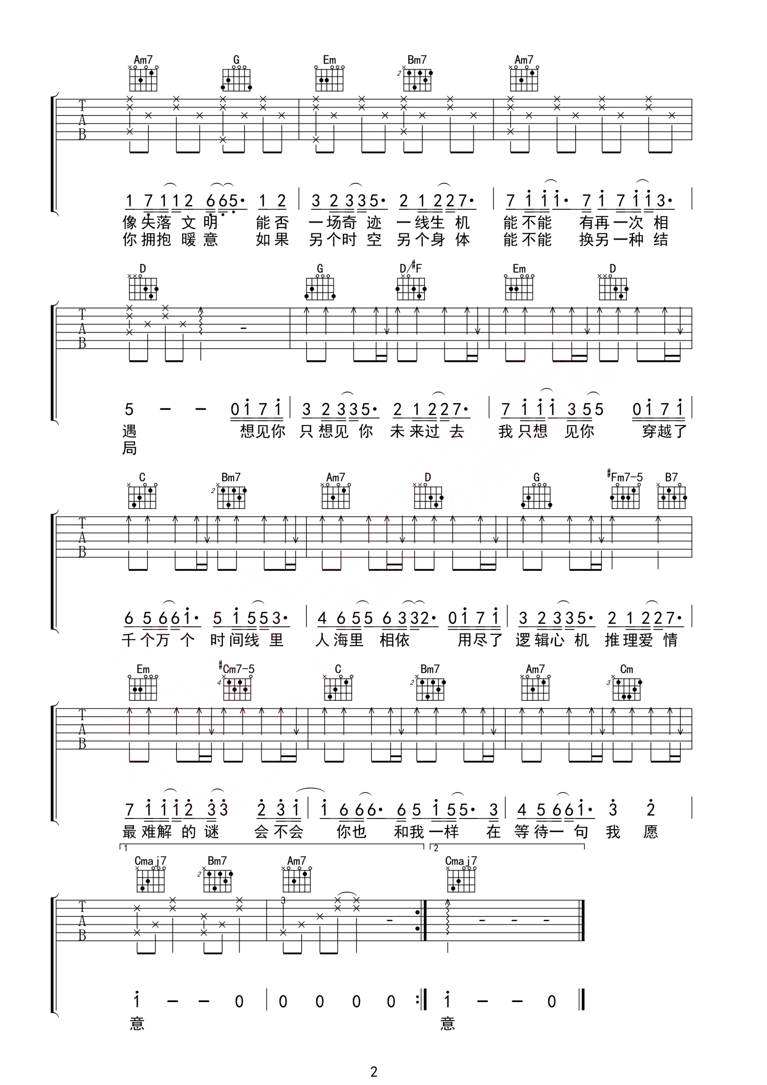 当前位置:琴谱网>吉他弹唱>想见你想见你想见你