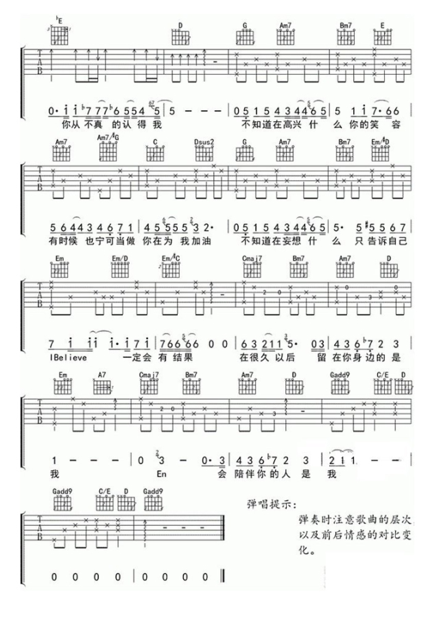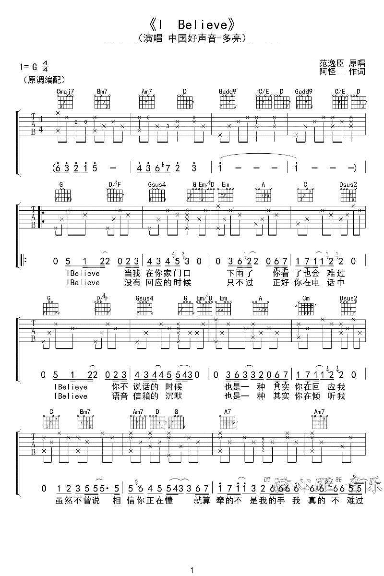 曲谱介绍: 范逸臣《i believe》吉他谱_吉他弹唱谱