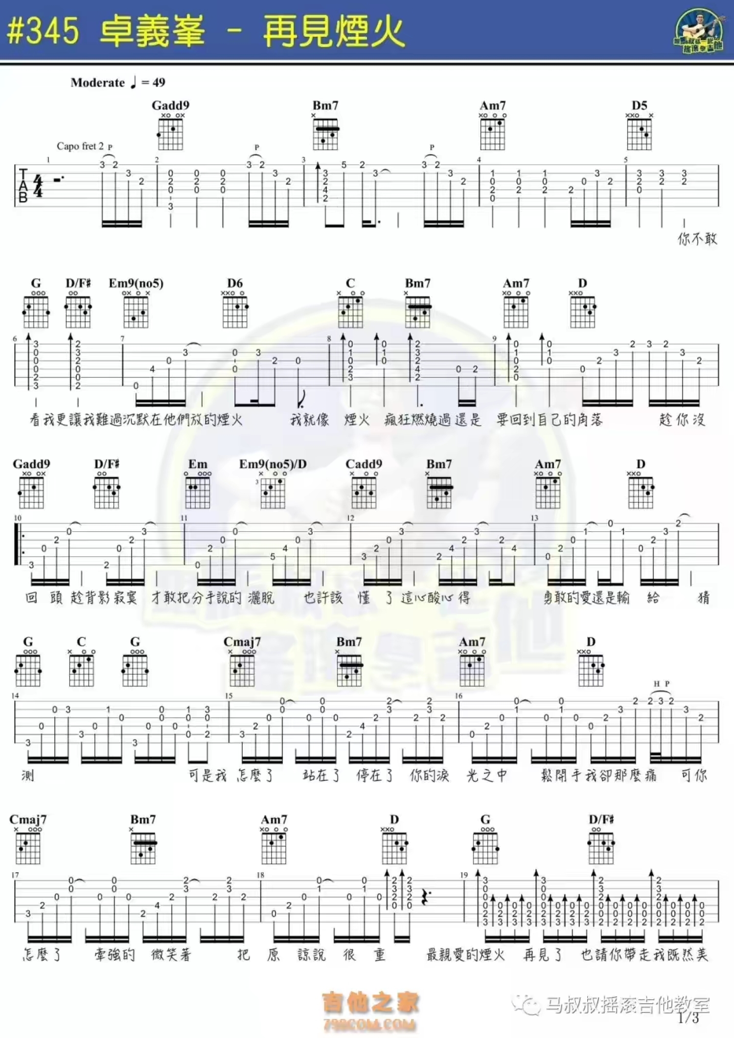 吉他弹唱G调来源:马叔叔吉他1063 浏览2020-07-17 22:29发布图谱共3页