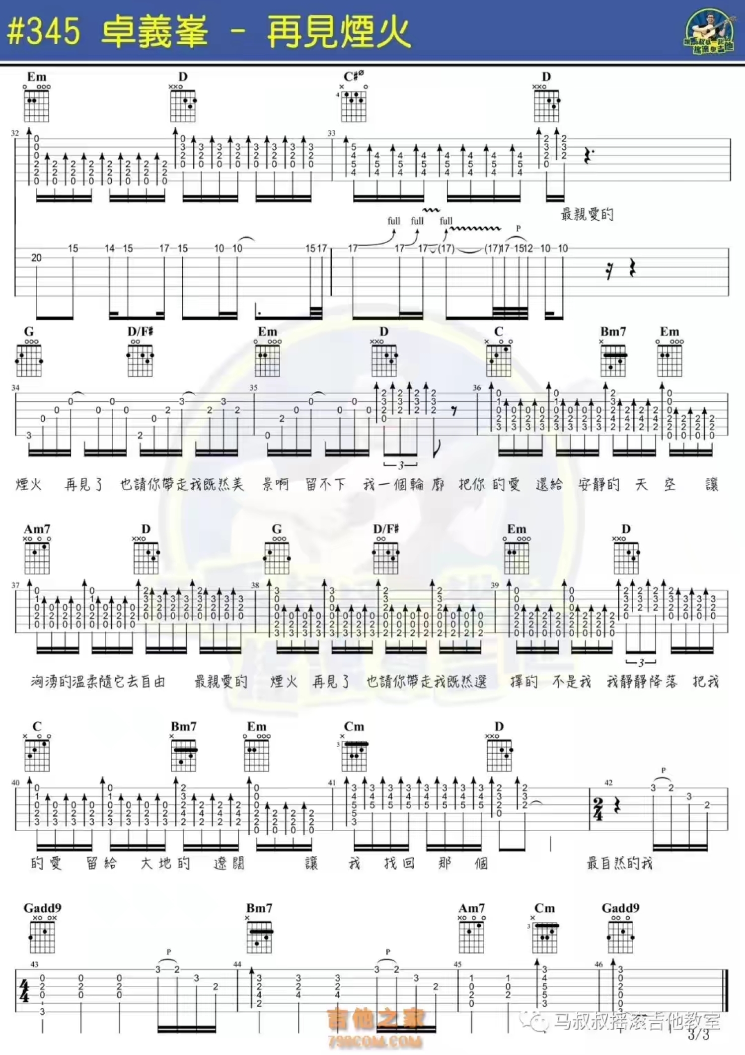 再见烟火吉他谱 - 卓义峰 - G调吉他弹唱谱