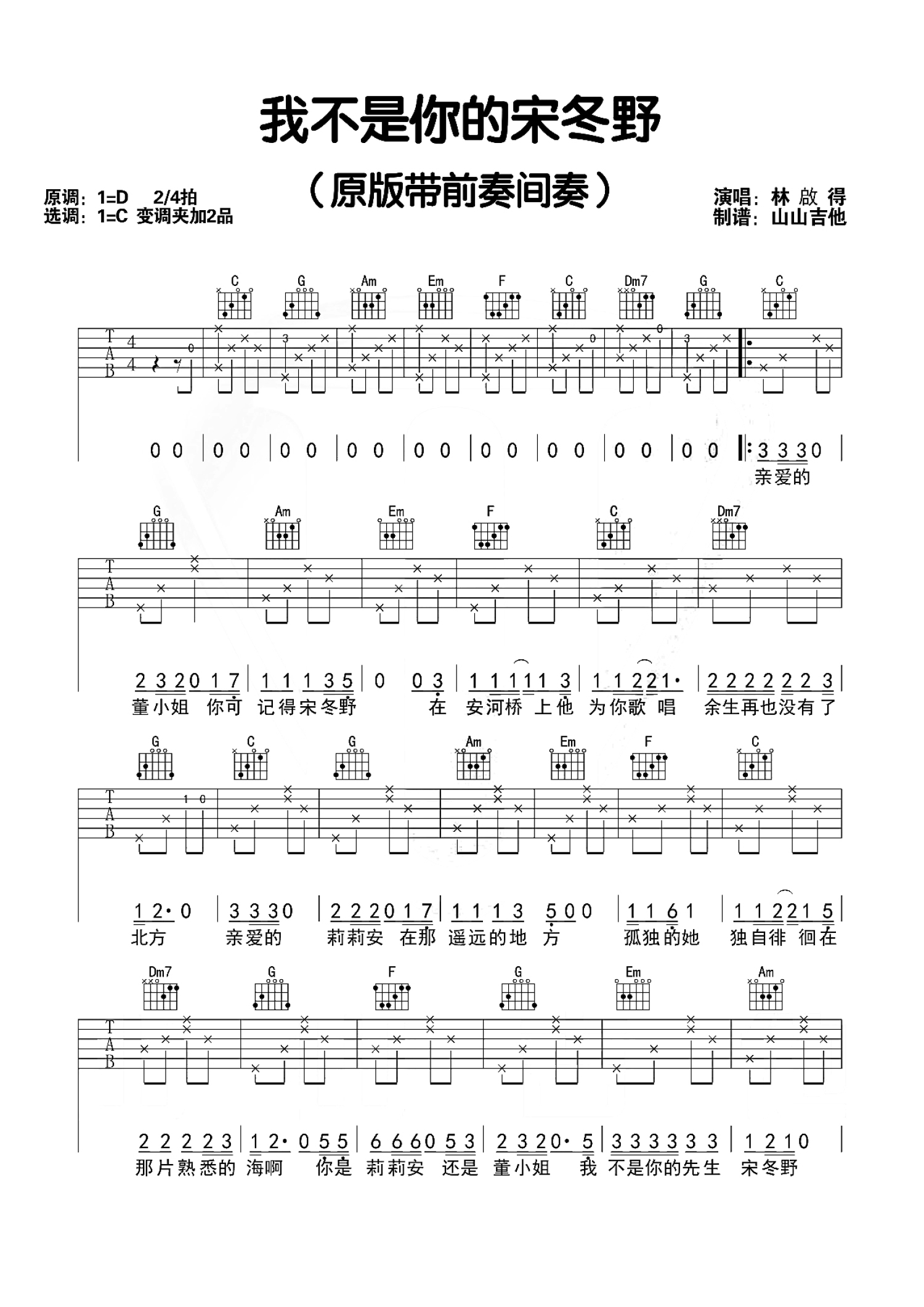 我不是你的宋冬野吉他谱 - 林啟得 - C调吉他弹唱谱