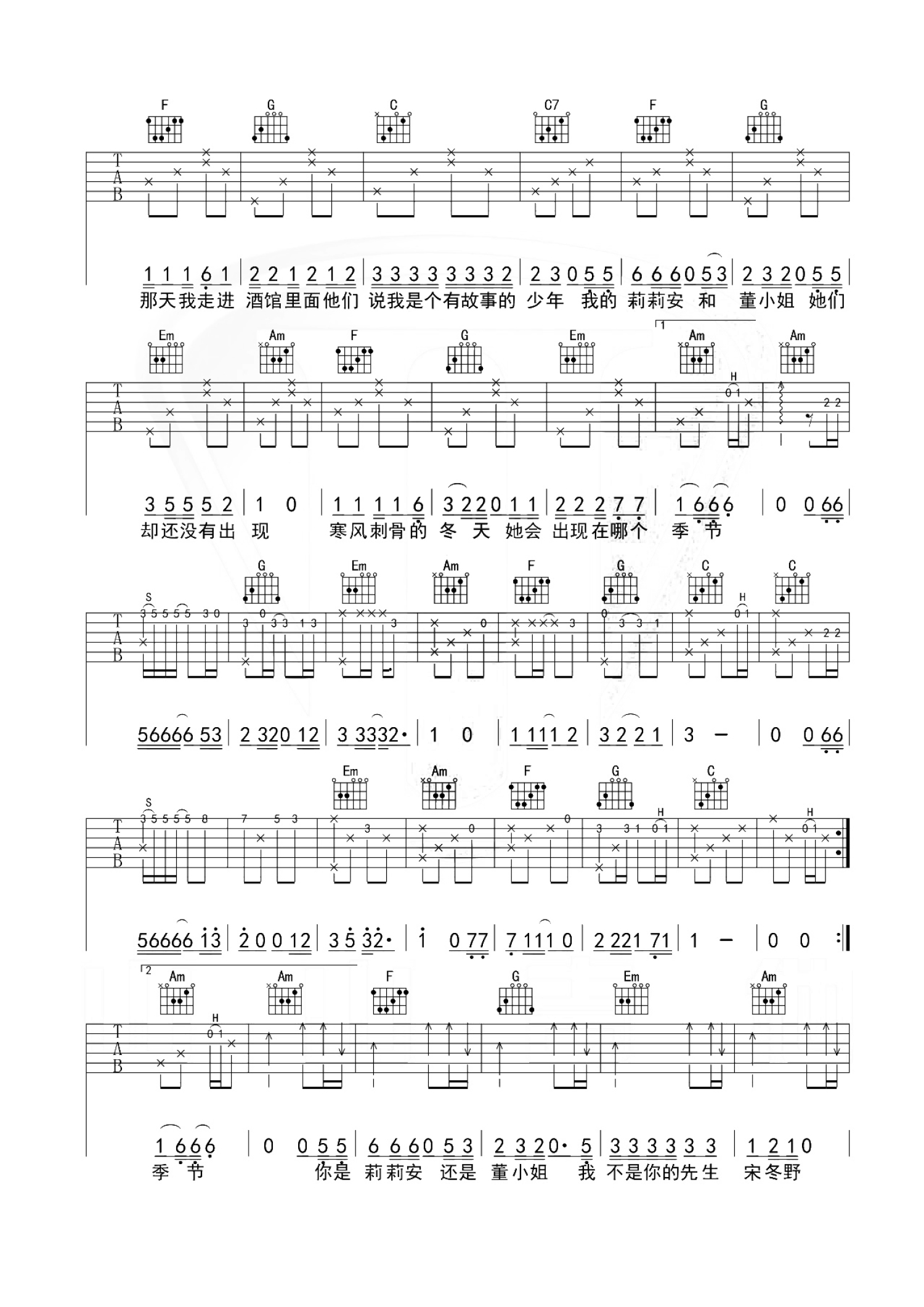 当前位置:琴谱网>吉他弹唱>我不是你的宋冬野
