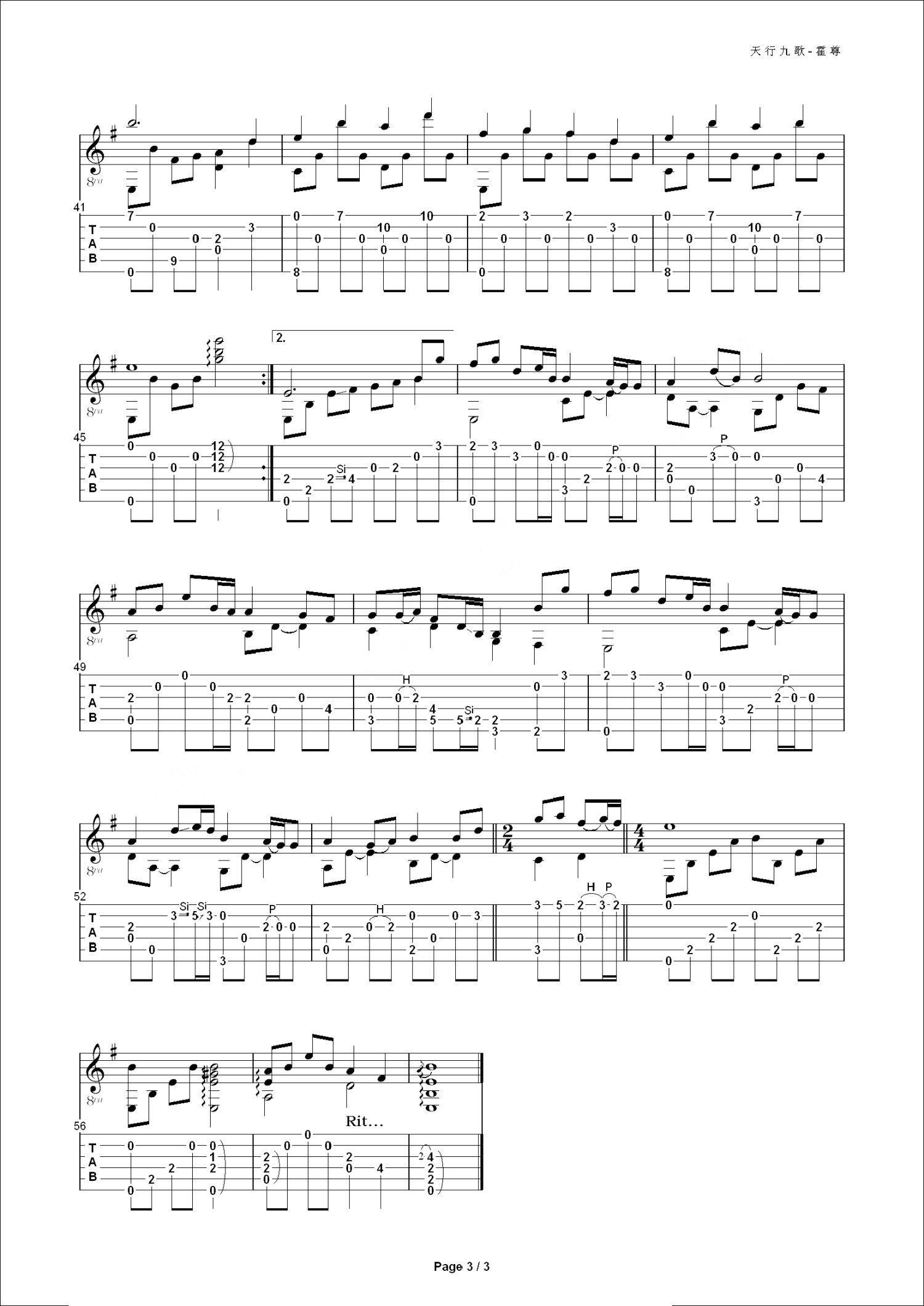当前位置:琴谱网>吉他独奏>天行九歌
