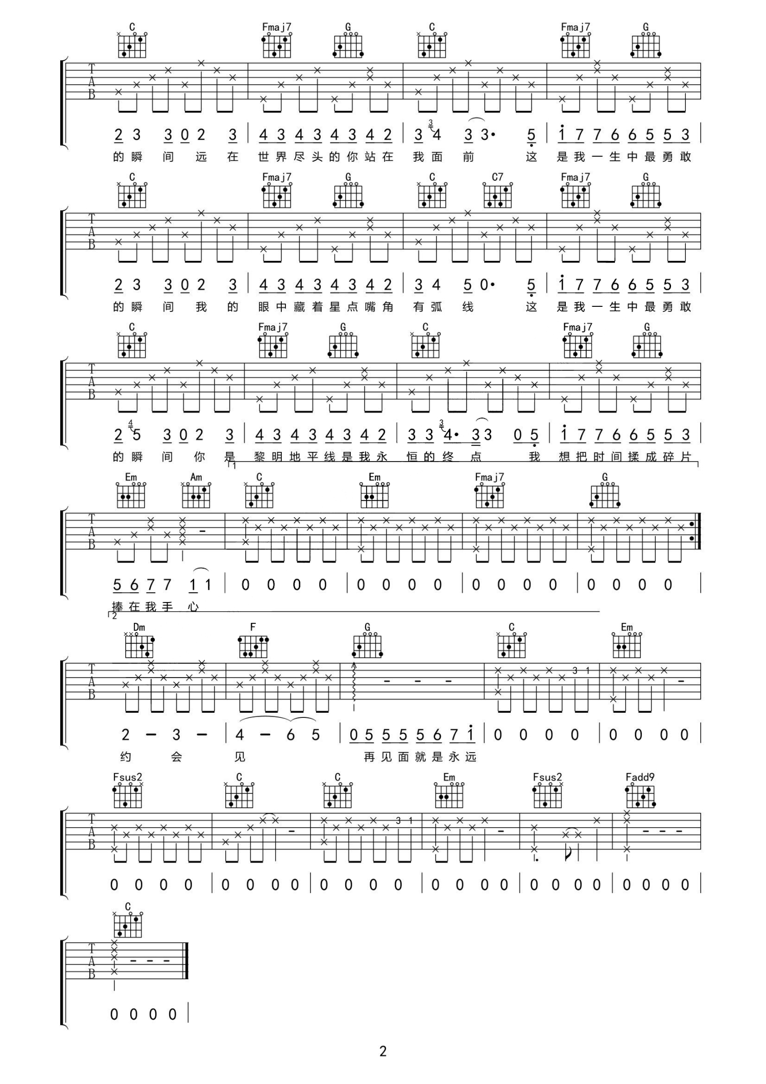 吉他弹唱C调来源:JTSJ93576 浏览2020-07-29 10:08发布图谱共2页