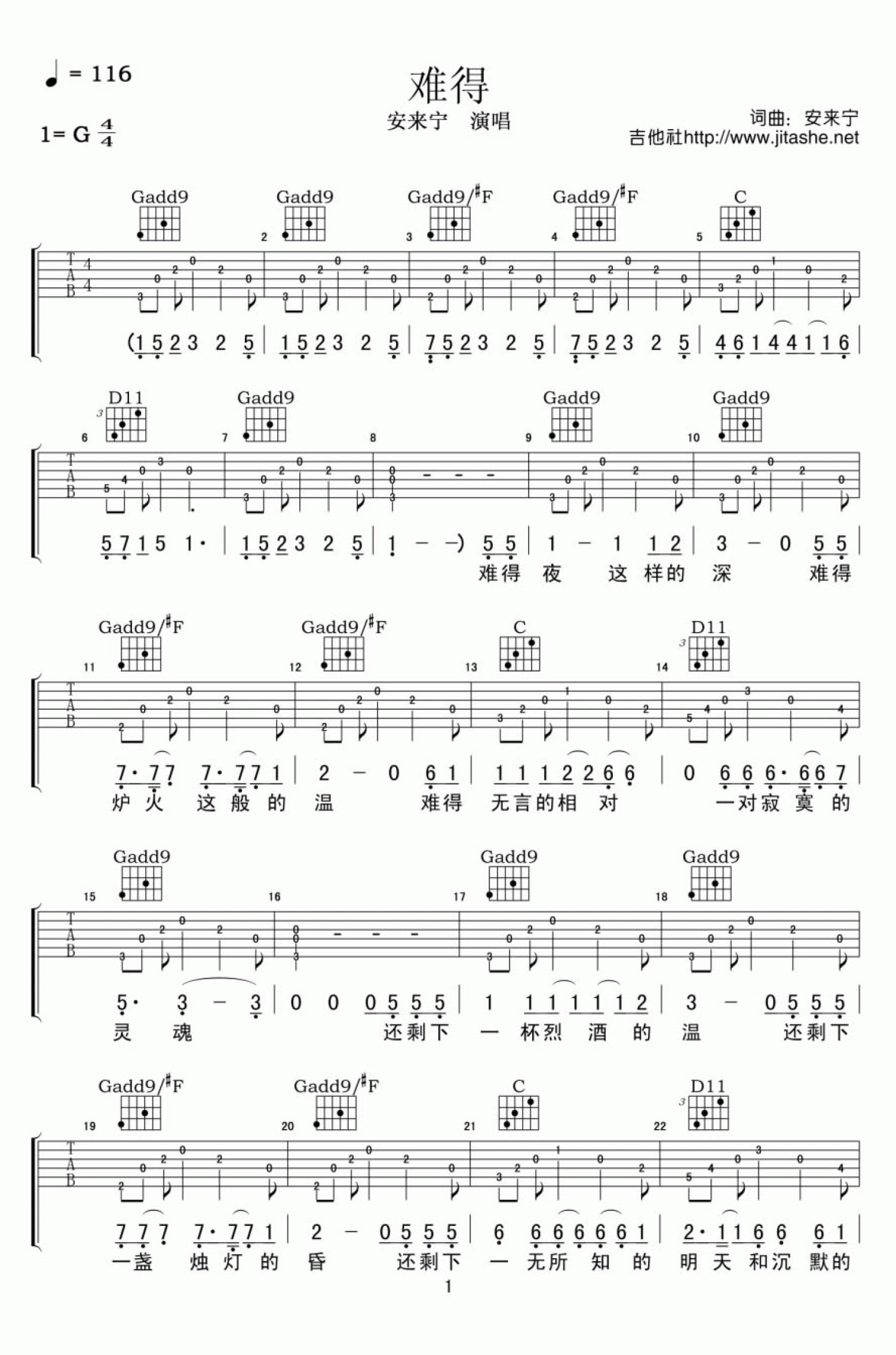 难得吉他谱 - 安来宁 - G调吉他弹唱谱