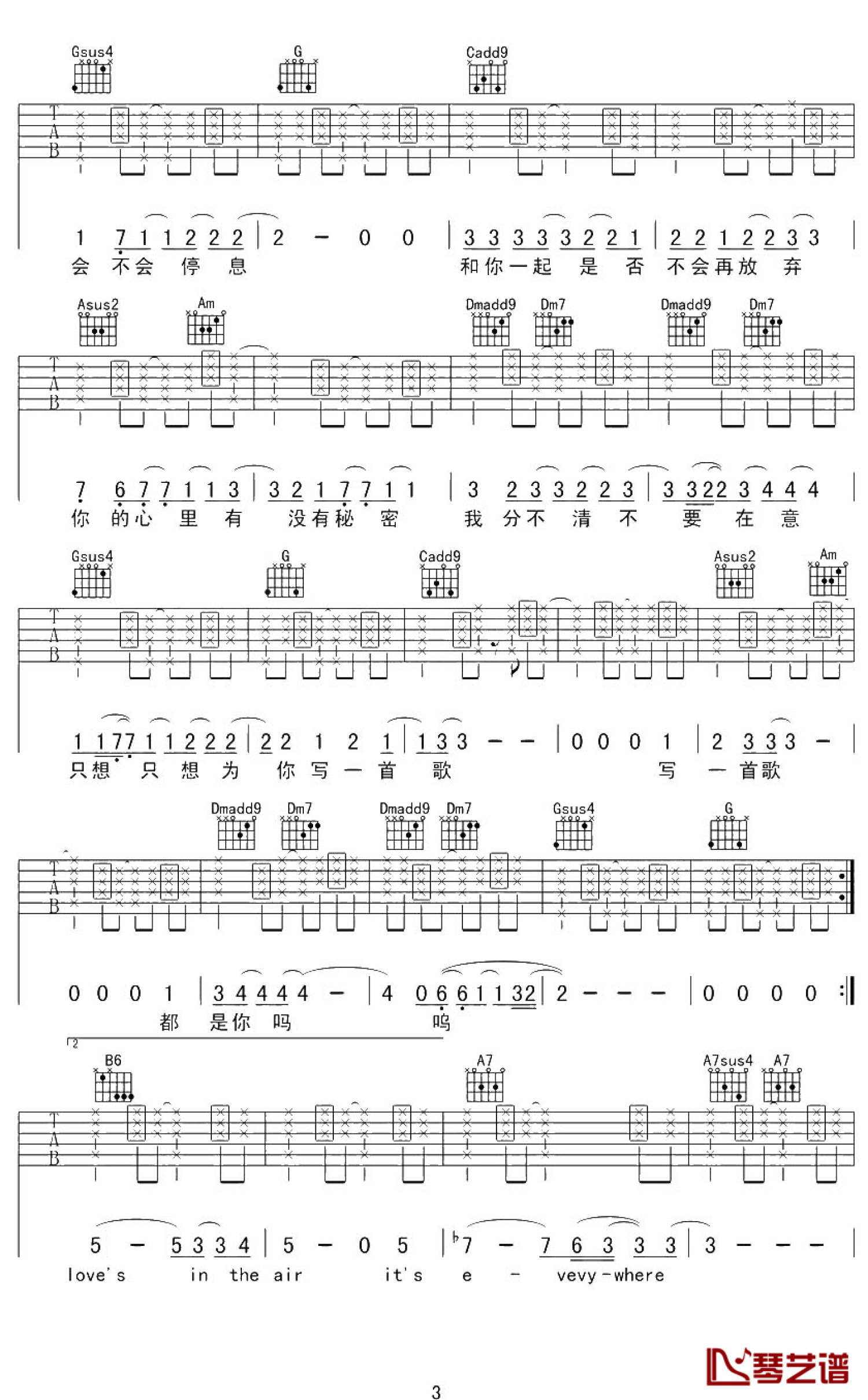 当前位置:琴谱网>吉他弹唱>写一首歌