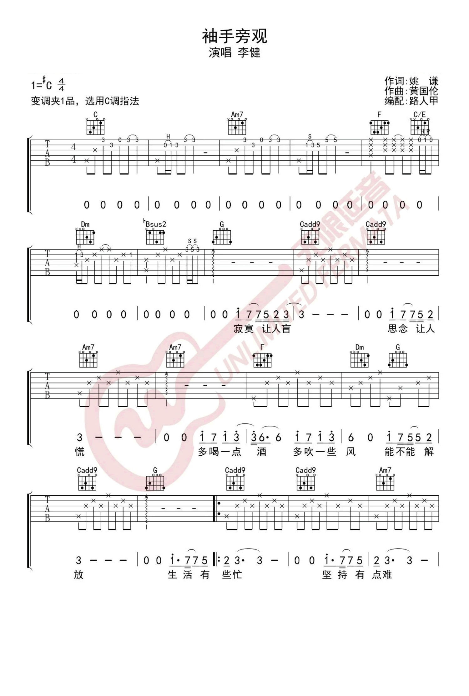 袖手旁观吉他谱 - 李健 - C调吉他弹唱谱