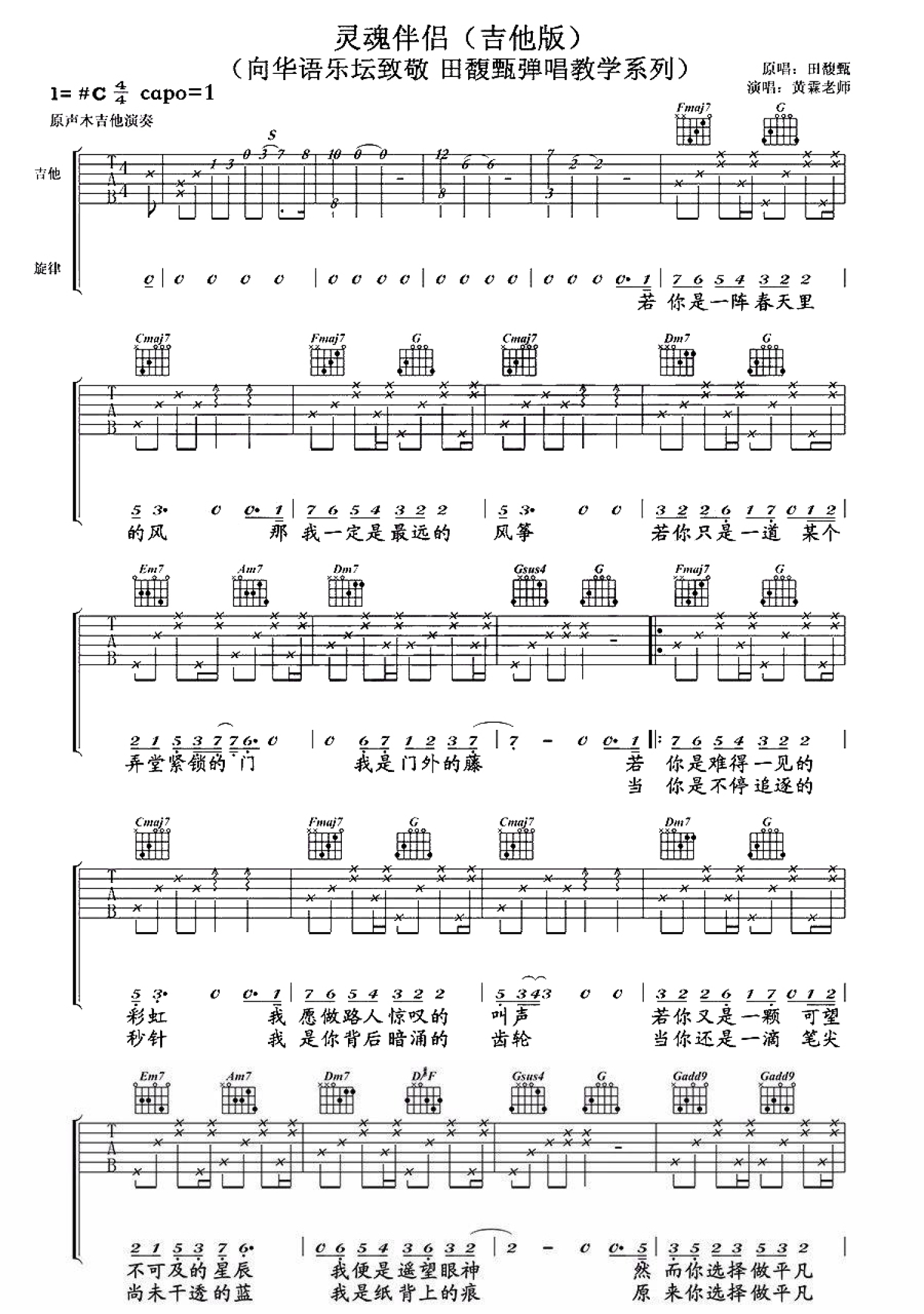 灵魂伴侣吉他谱 - 田馥甄 - C调吉他弹唱谱