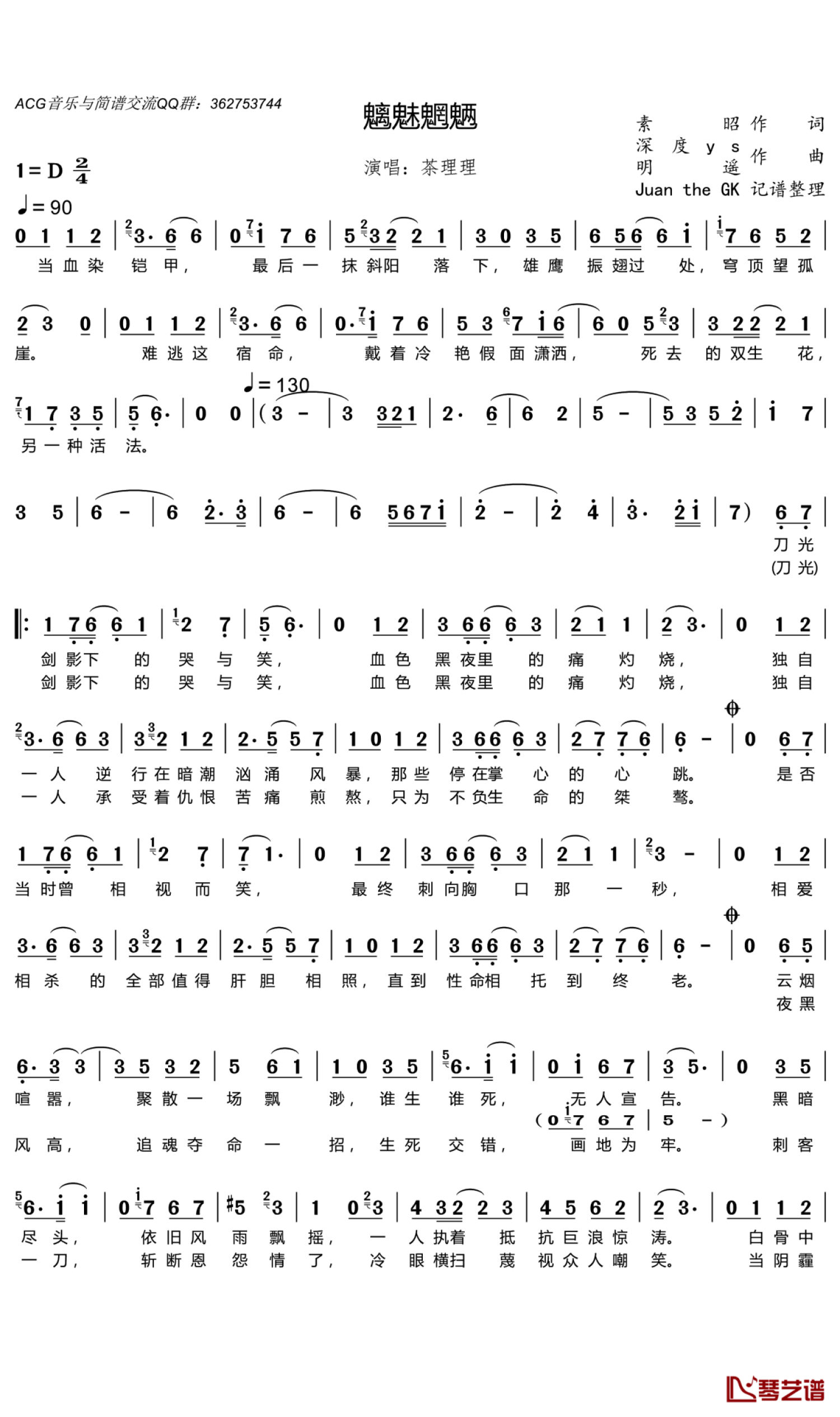 曲谱介绍: 茶理理《魑魅魍魉》歌词_简谱