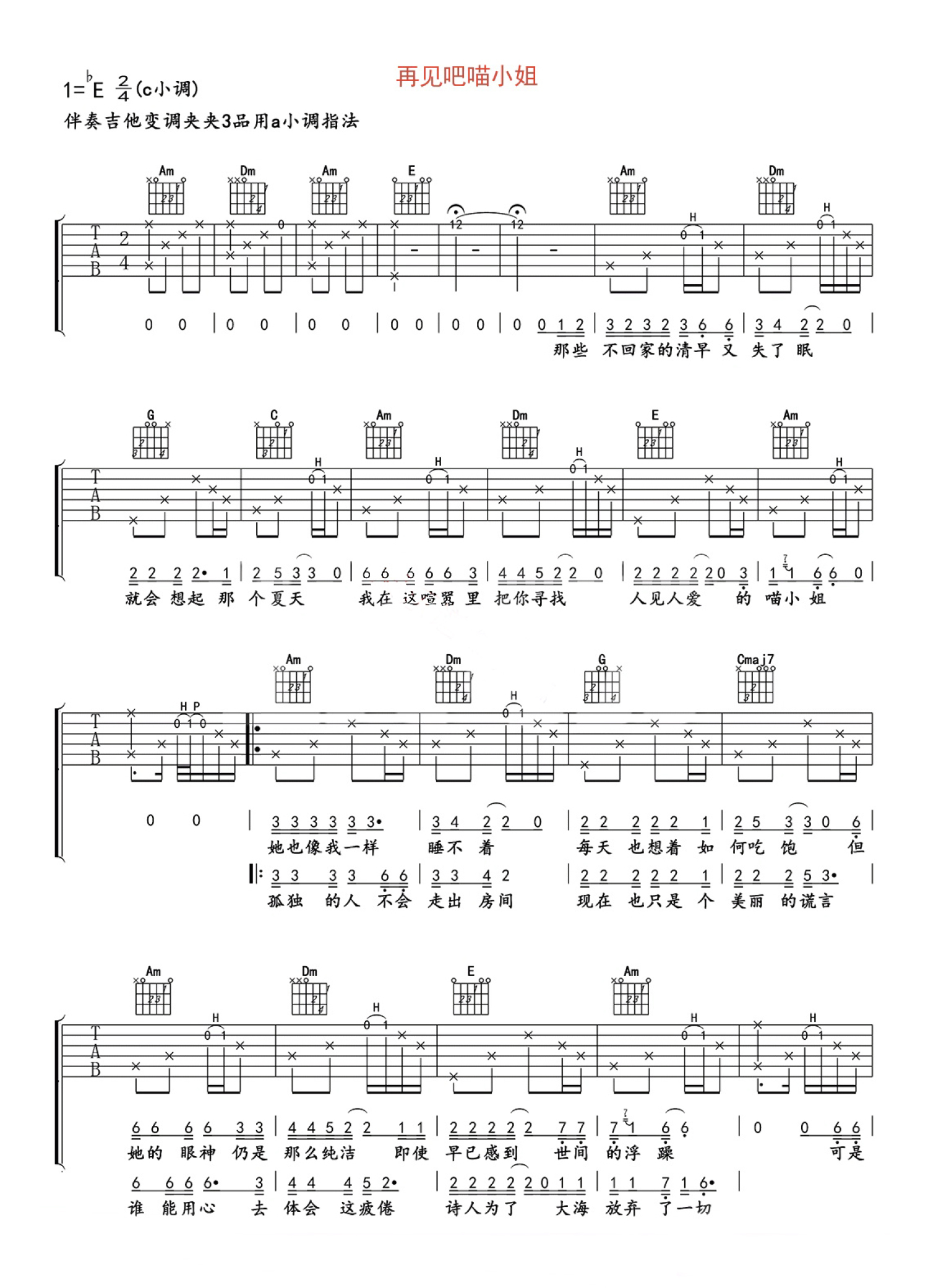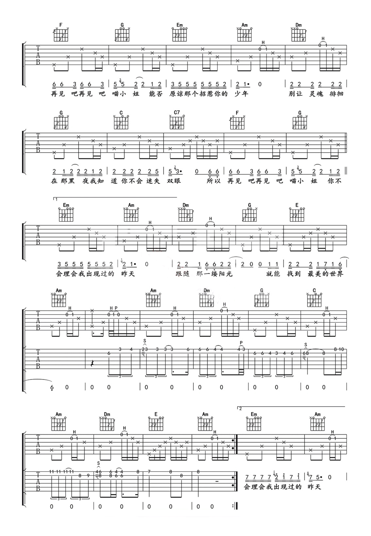 当前位置:琴谱网>吉他弹唱>再见吧喵小姐