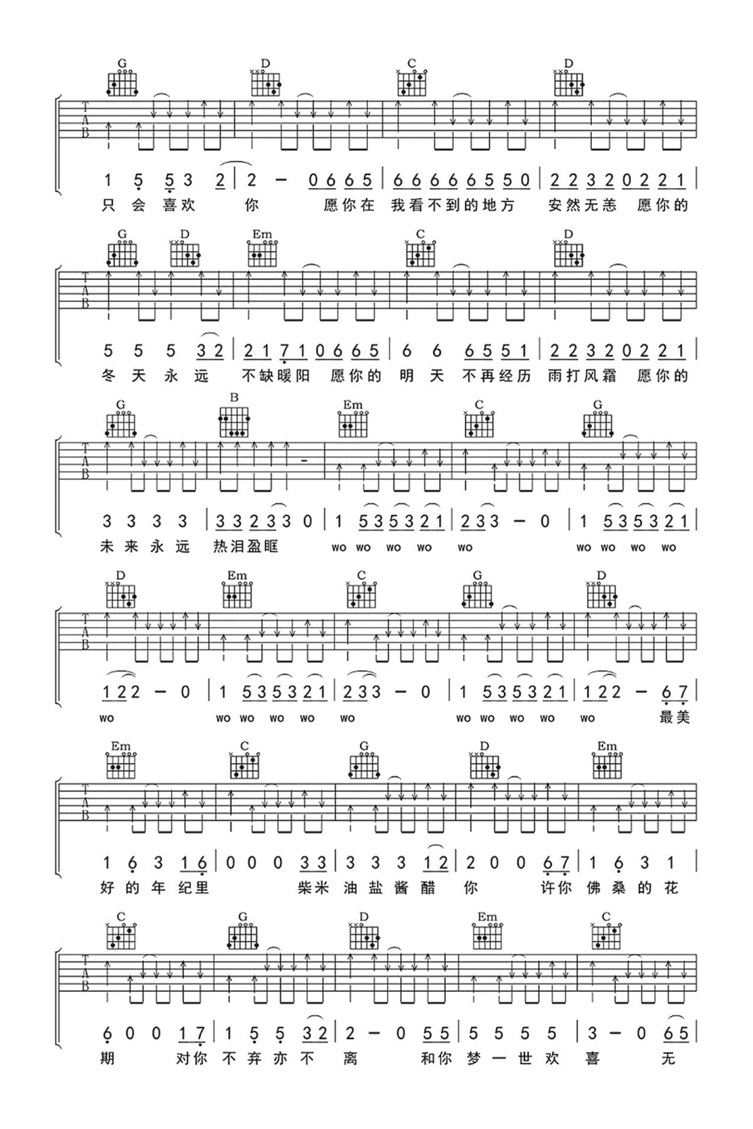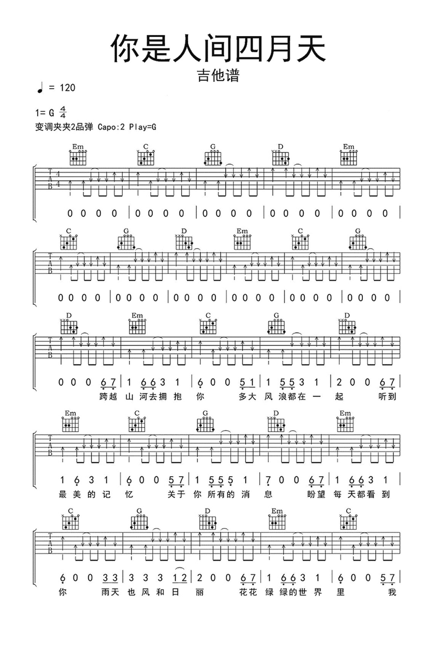 曲谱介绍: 解忧邵帅《你是人间四月天》吉他谱_G调吉他弹唱谱